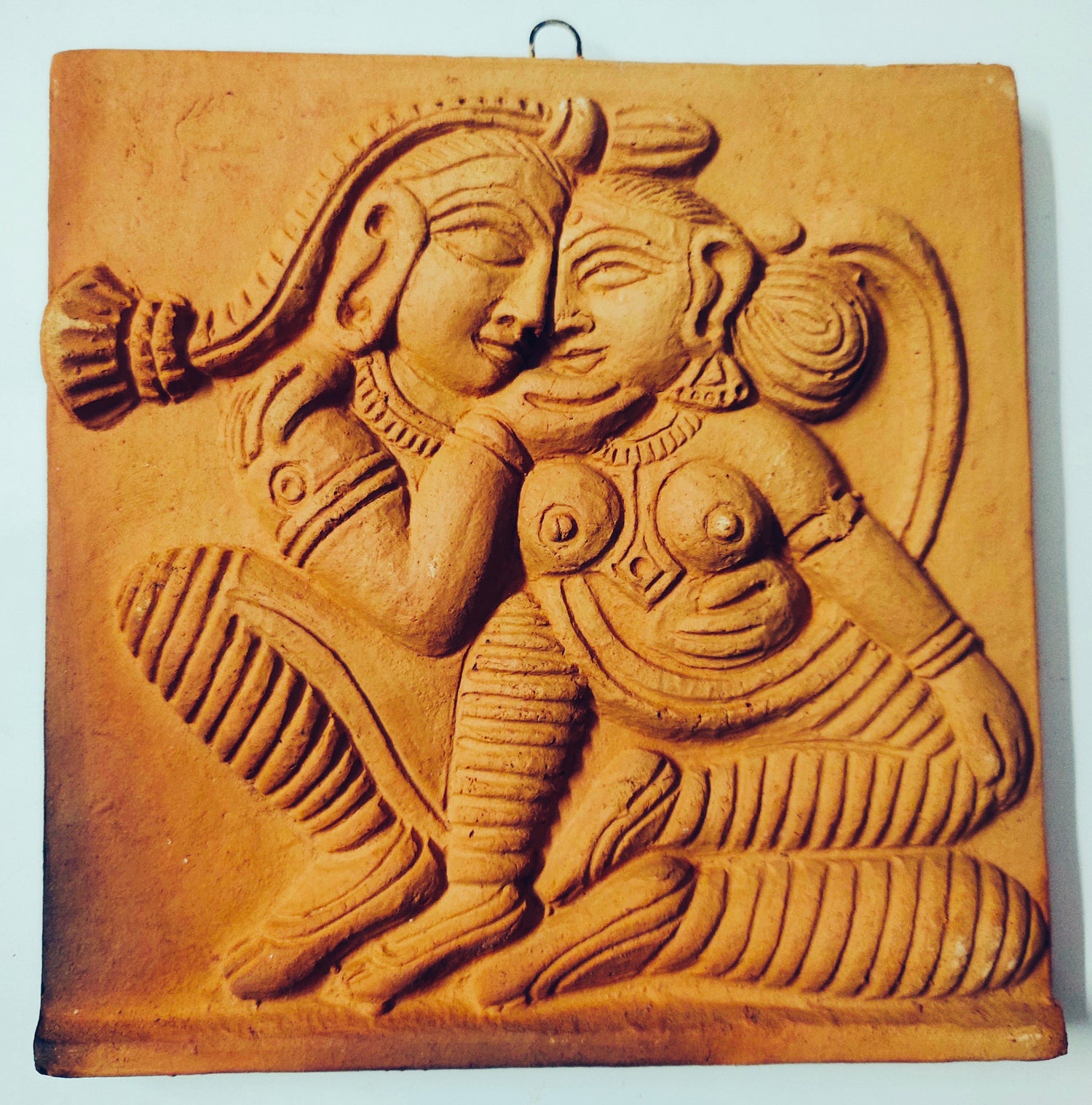 Terracotta Wall Hanging Showpiece for Home Decor Shiv Parvati (Brown, Medium)