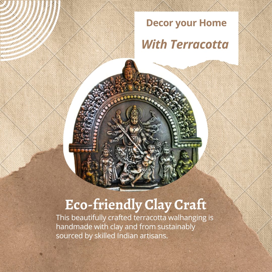 Terracotta Maa Durga Sherawali Maa Wall Hanging Showpiece Medium.