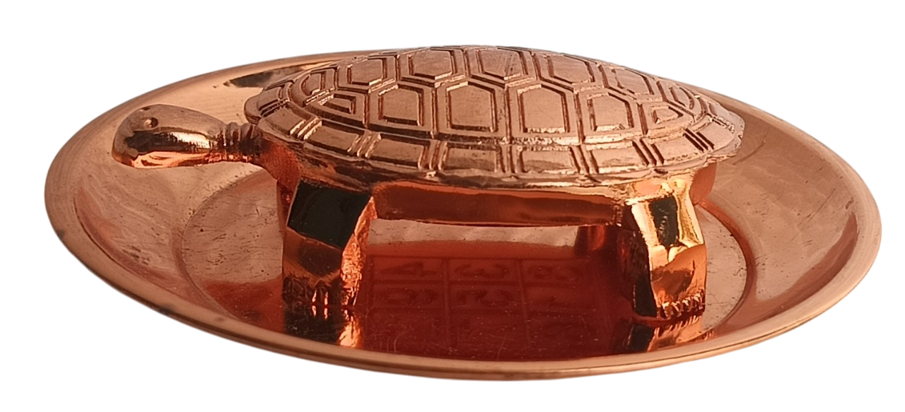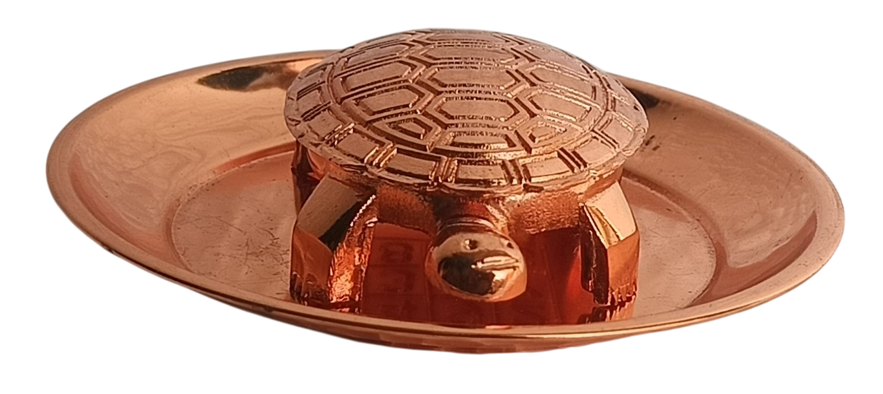 Bring harmony, stability, and prosperity into your space with this beautifully crafted Copper Tortoise and Plate Set. Designed according to Vastu and Feng Shui principles, the tortoise symbolizes longevity, protection, and financial growth. Made from high-quality copper with a rich brass finish, this elegant piece doubles as a spiritual enhancer and a home decor collectible. Ideal for pooja rooms, desks, or gifting on spiritual occasions.