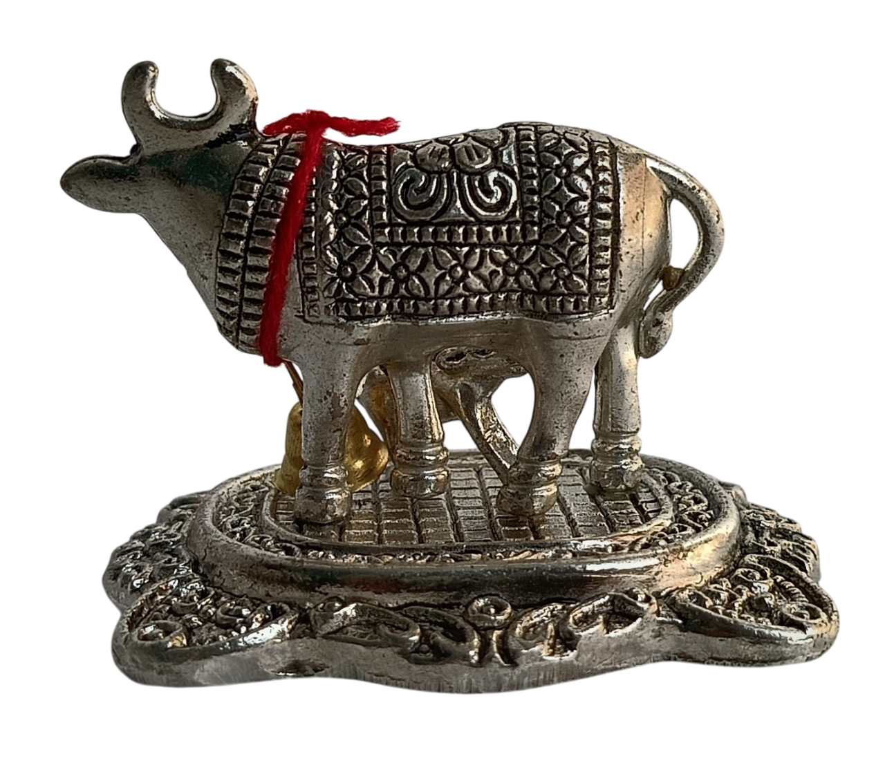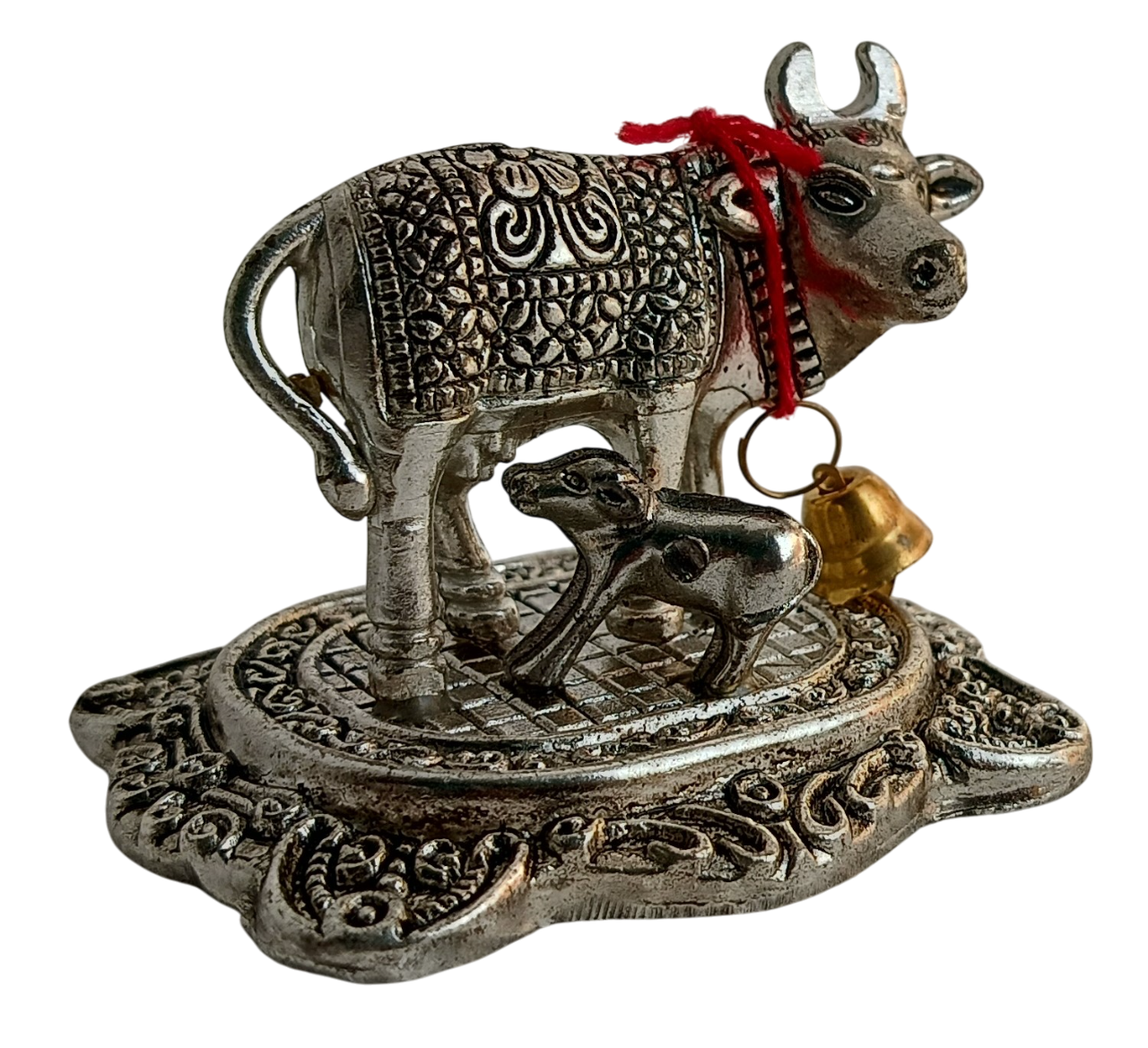 Celebrate the divine bond of motherhood and prosperity with our German Silver Cow and Calf Statue. Handcrafted from premium German silver, this exquisite piece showcases intricate detailing, making it a perfect addition to your home altar or spiritual decor.