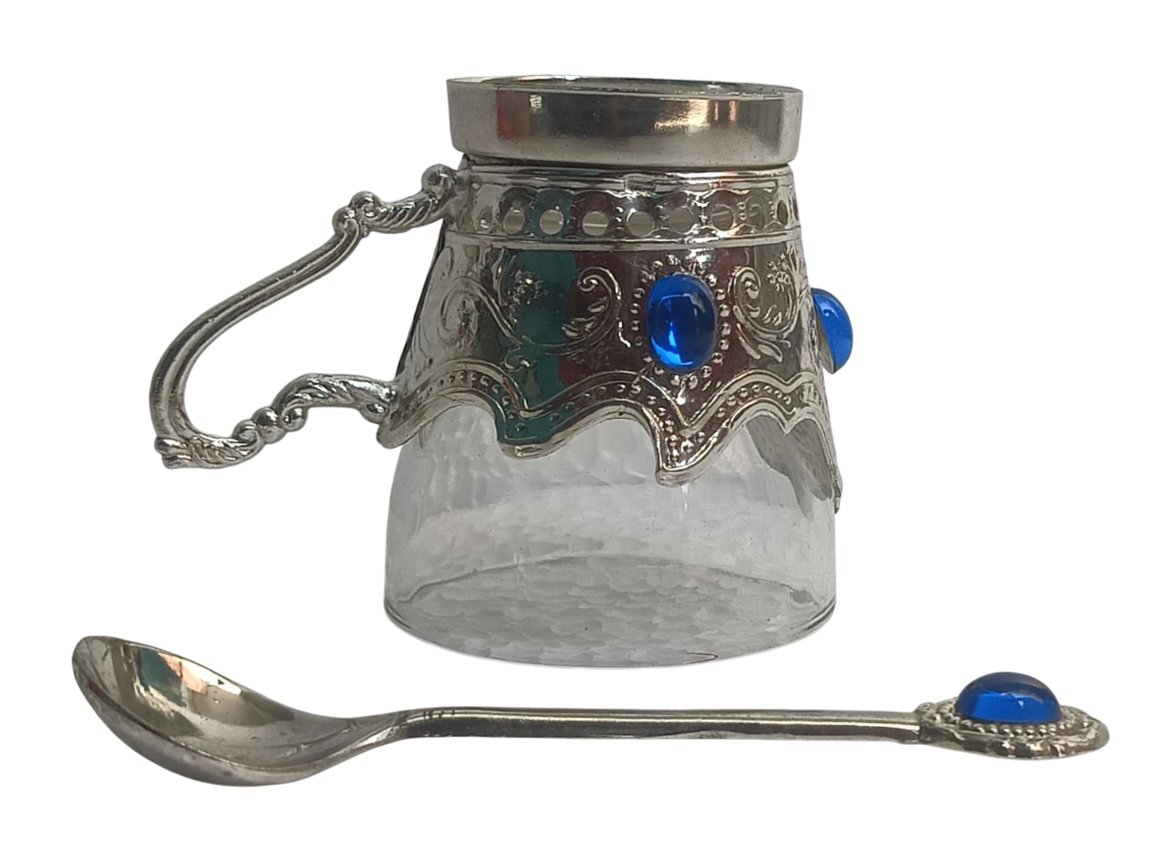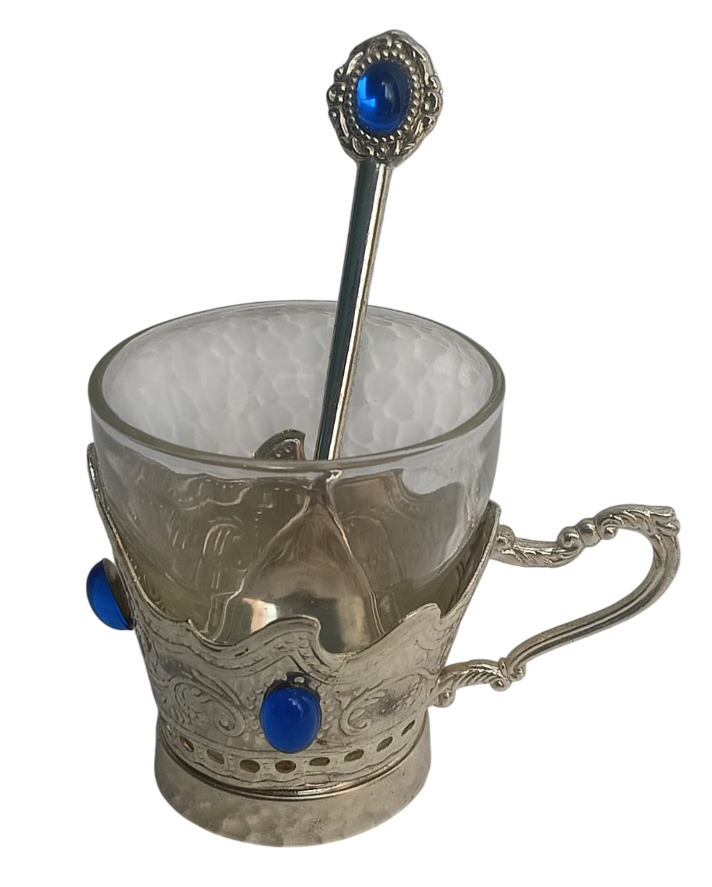 Handcrafted German Silver Cup Set with Spoon – Traditional Home Décor