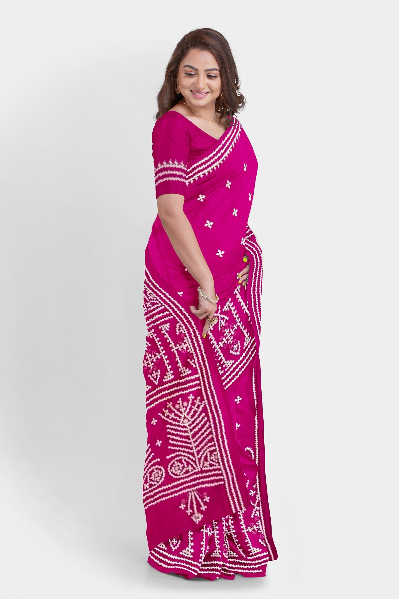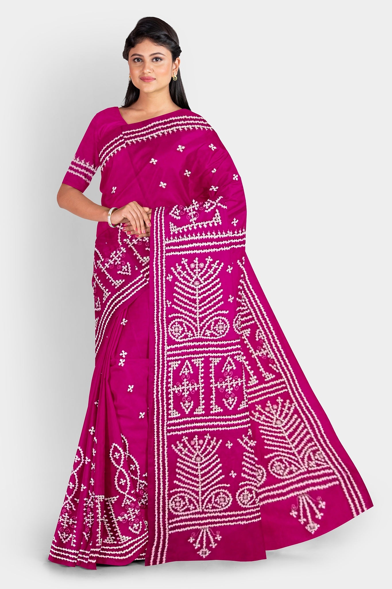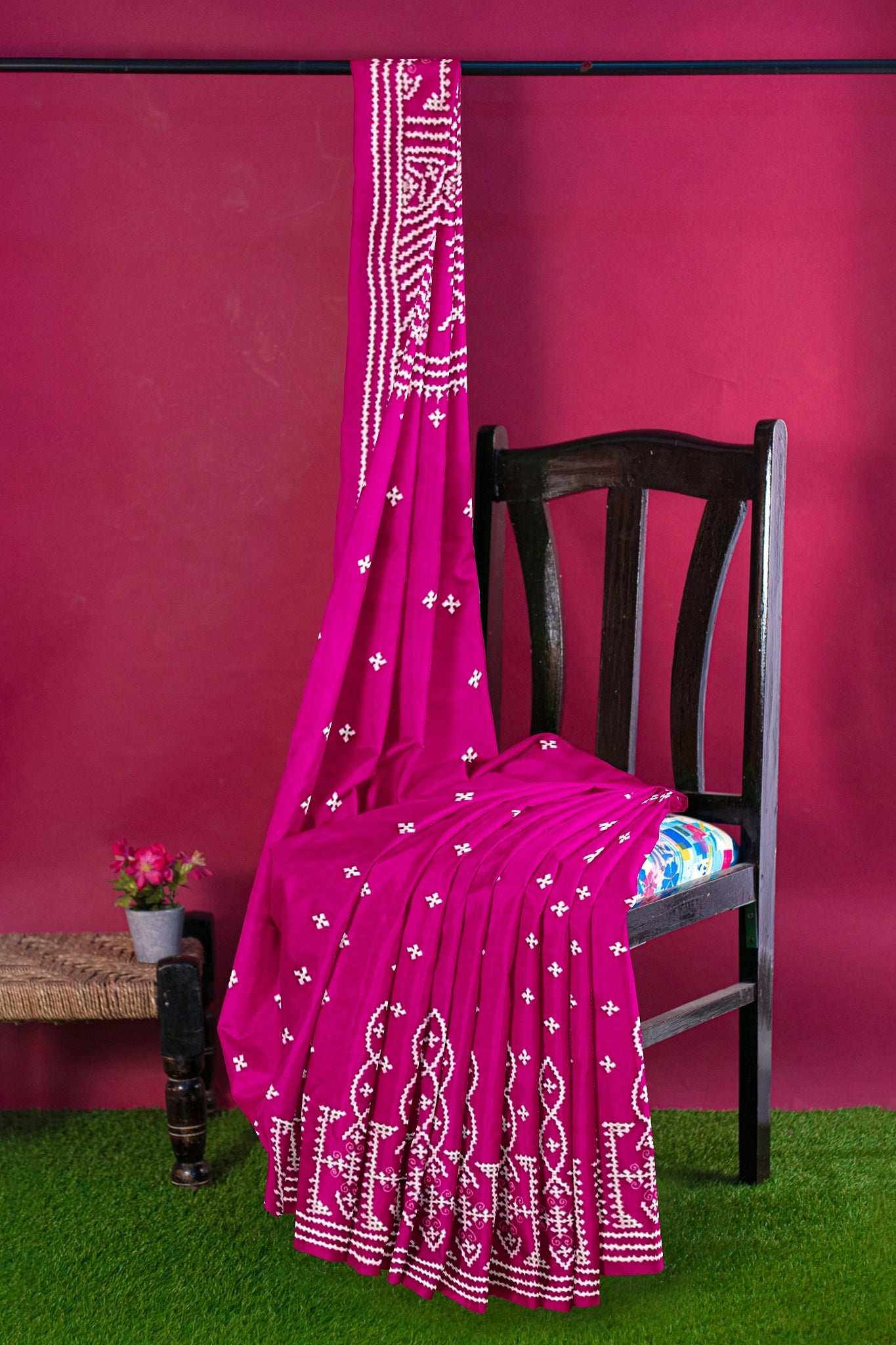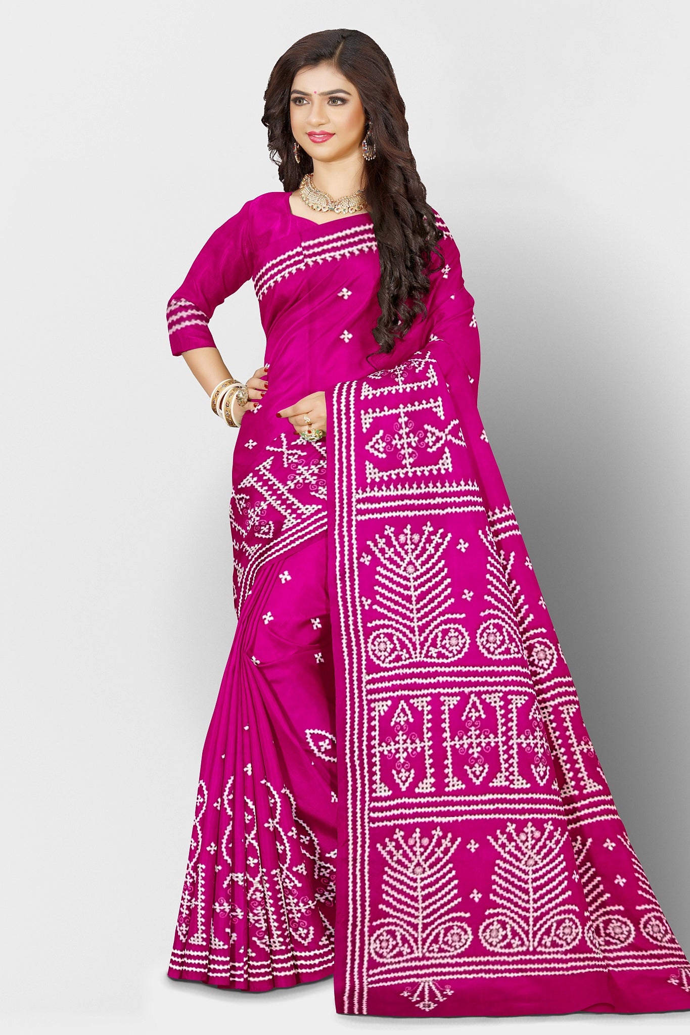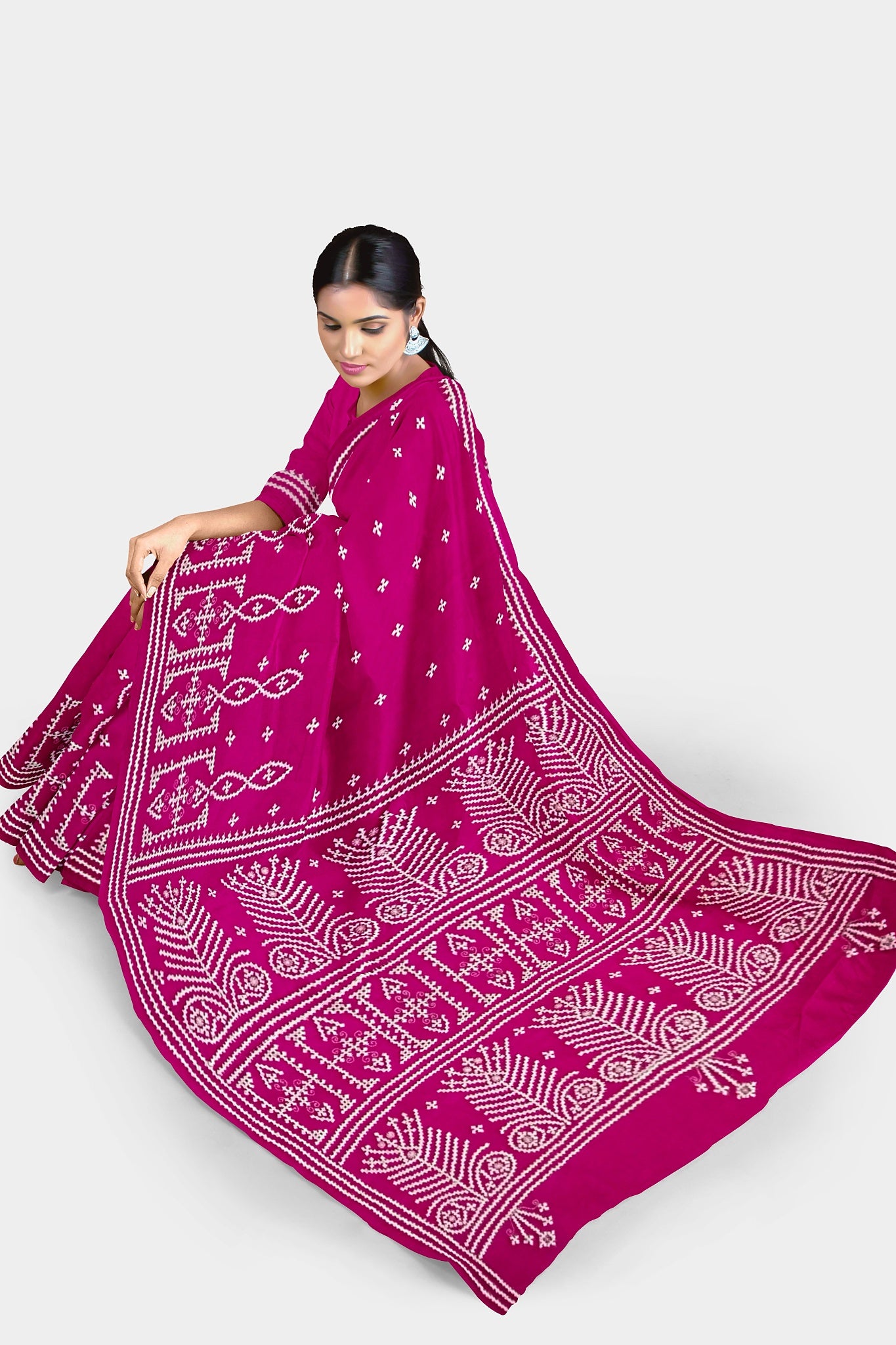 Color : Rani Pink color Saree . White Color Tread Work.
