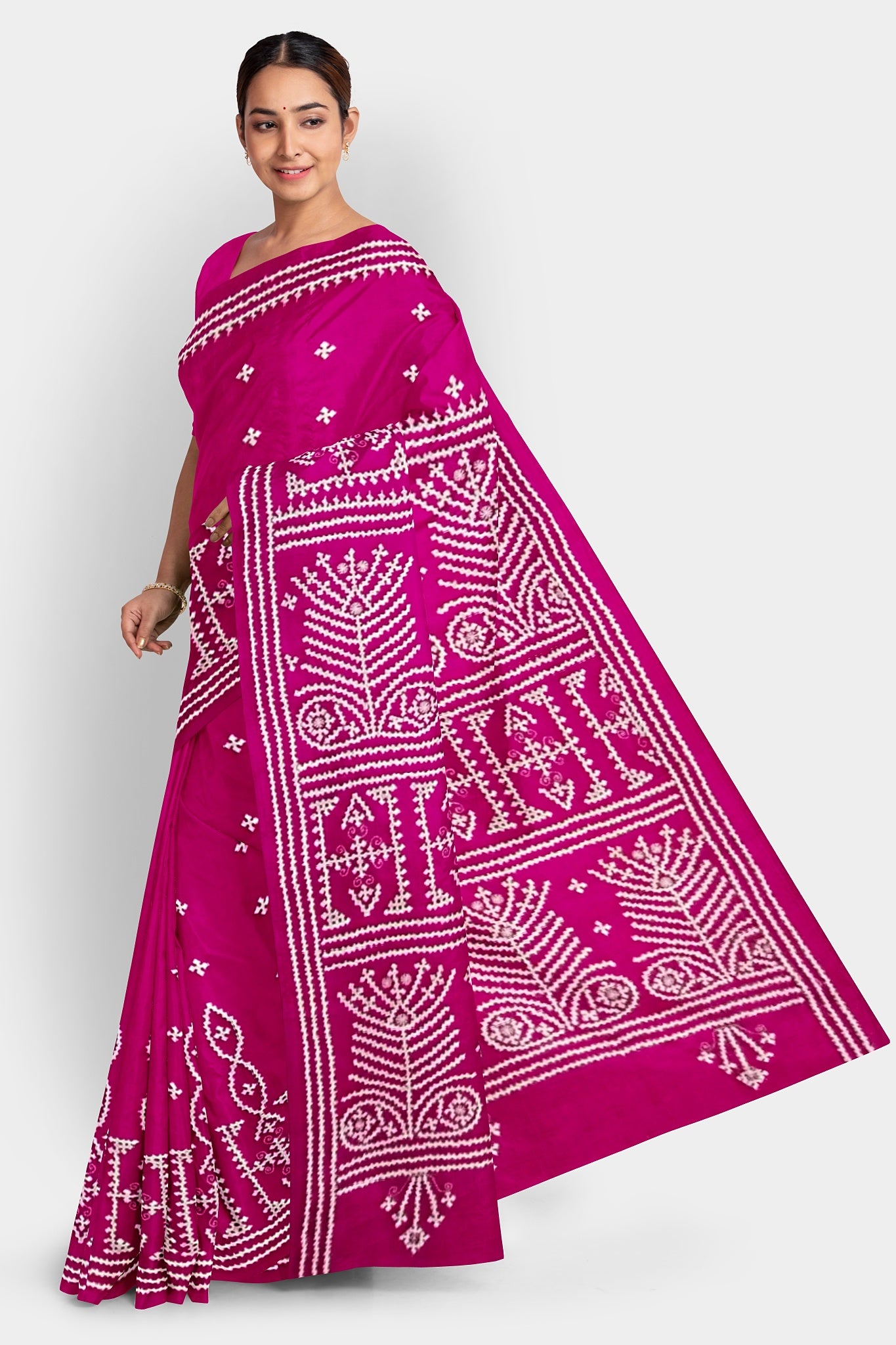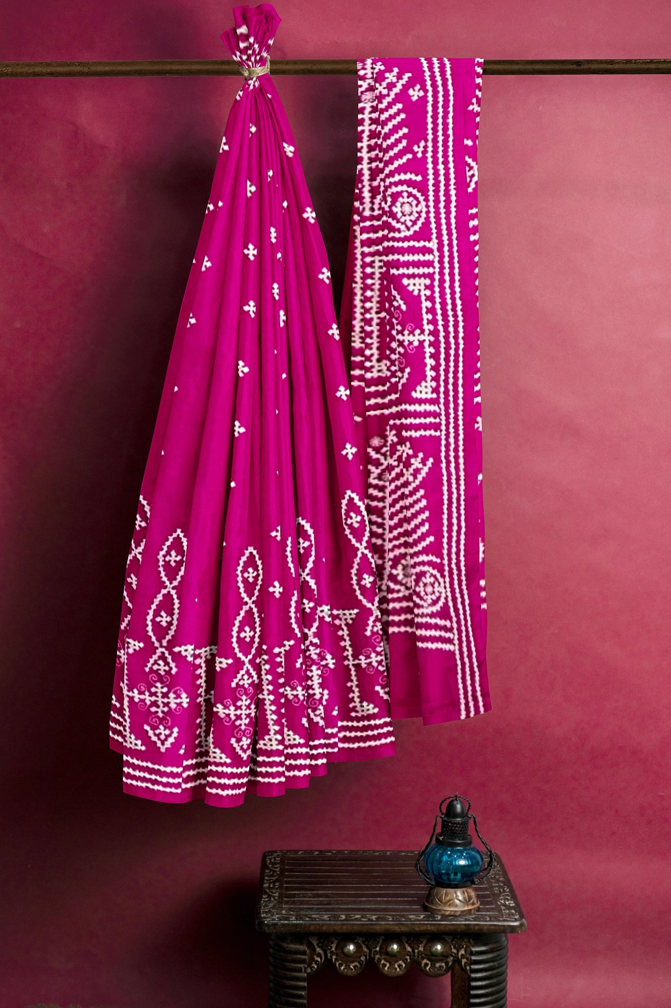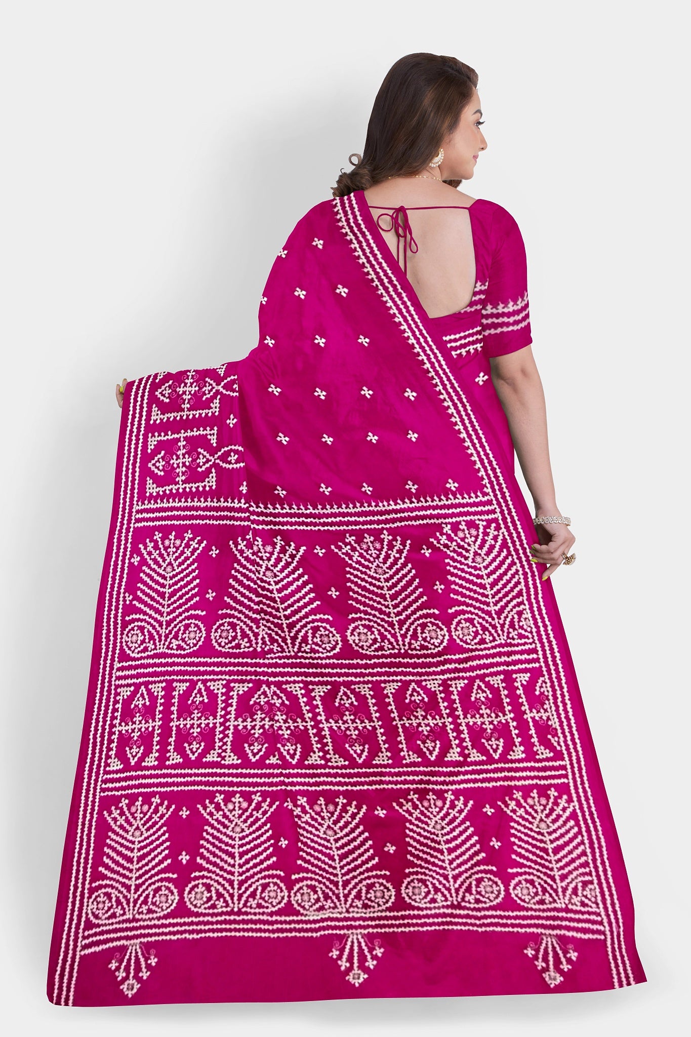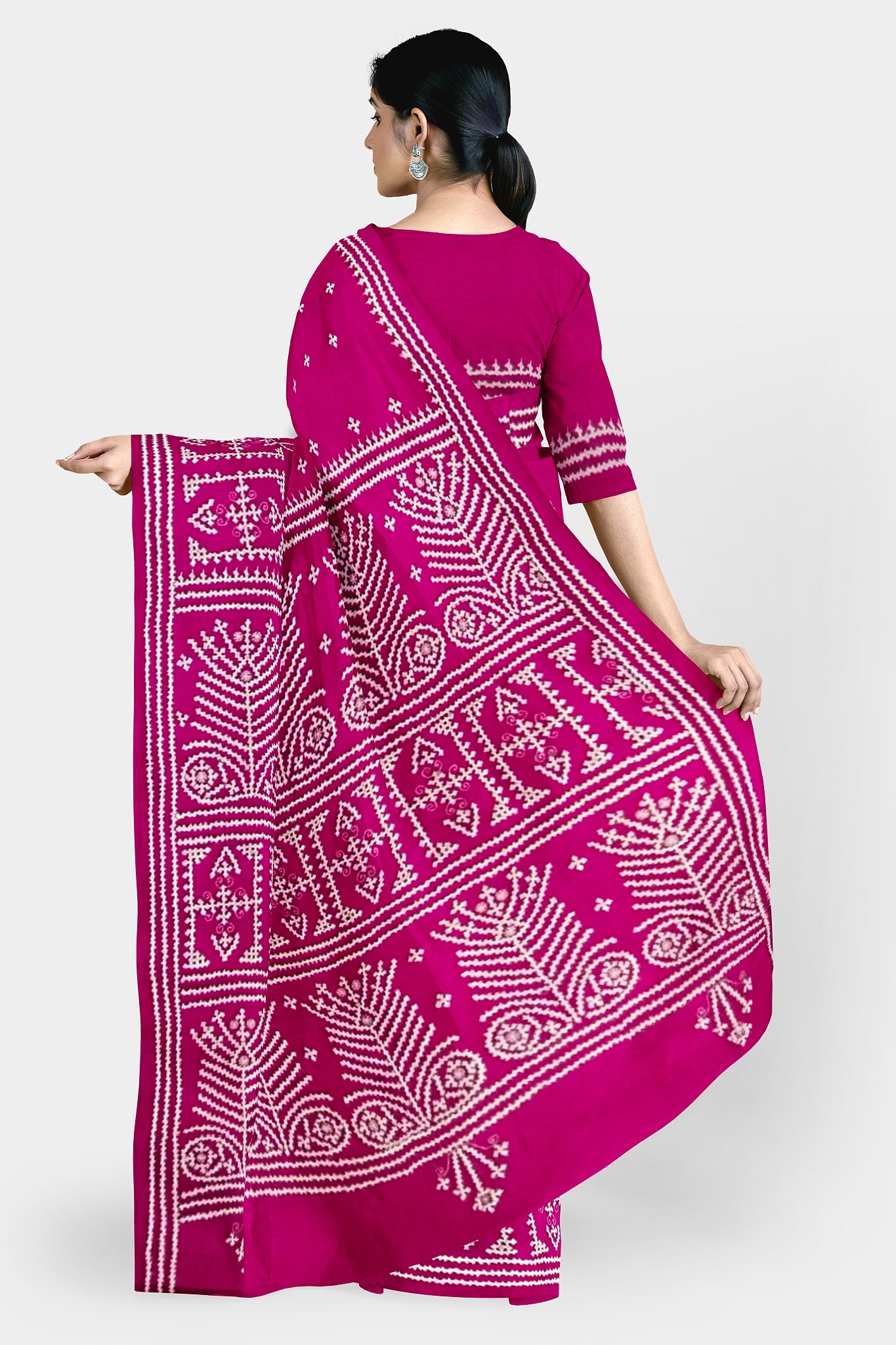 Color : Rani Pink color Saree . White Color Tread Work.