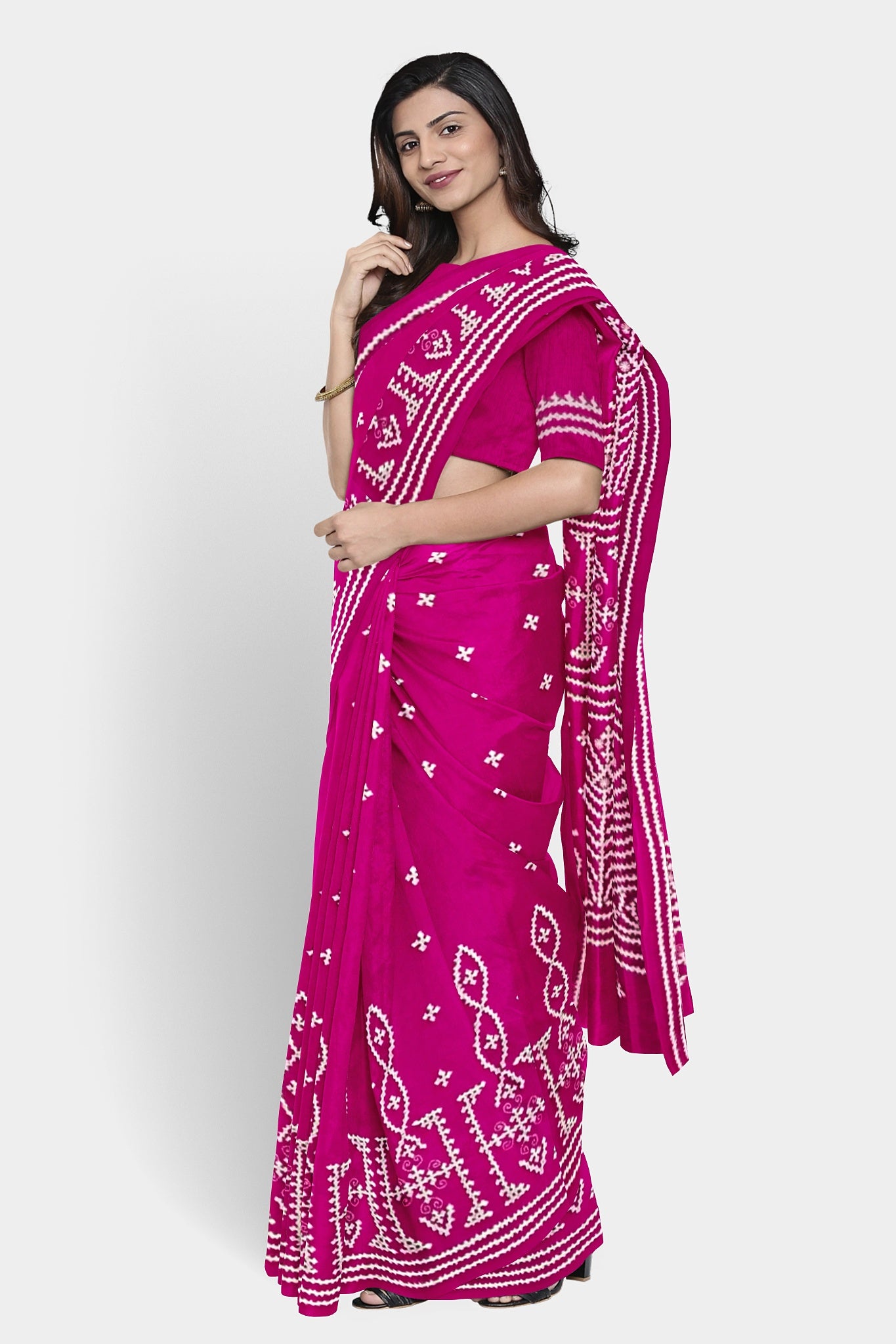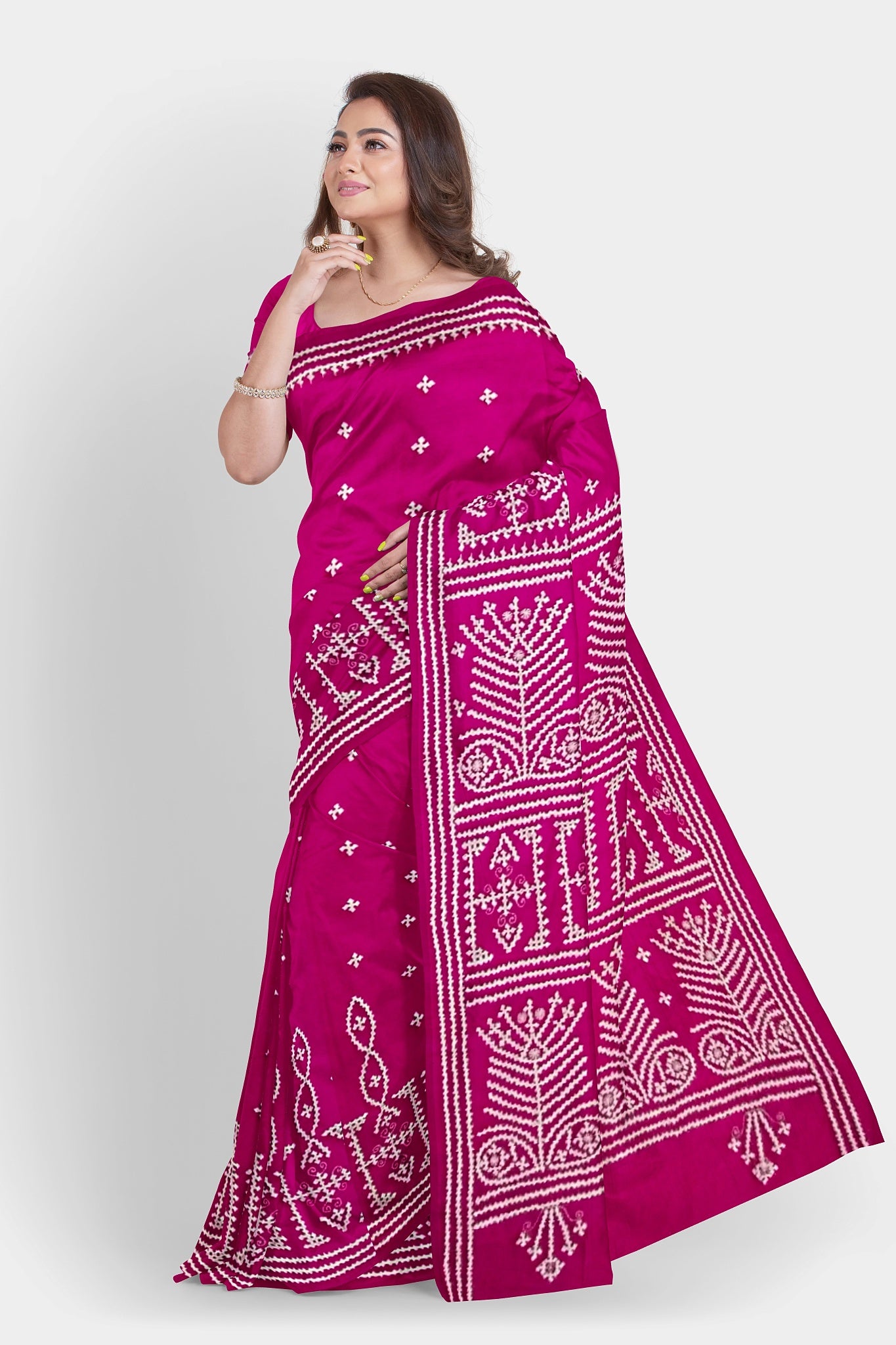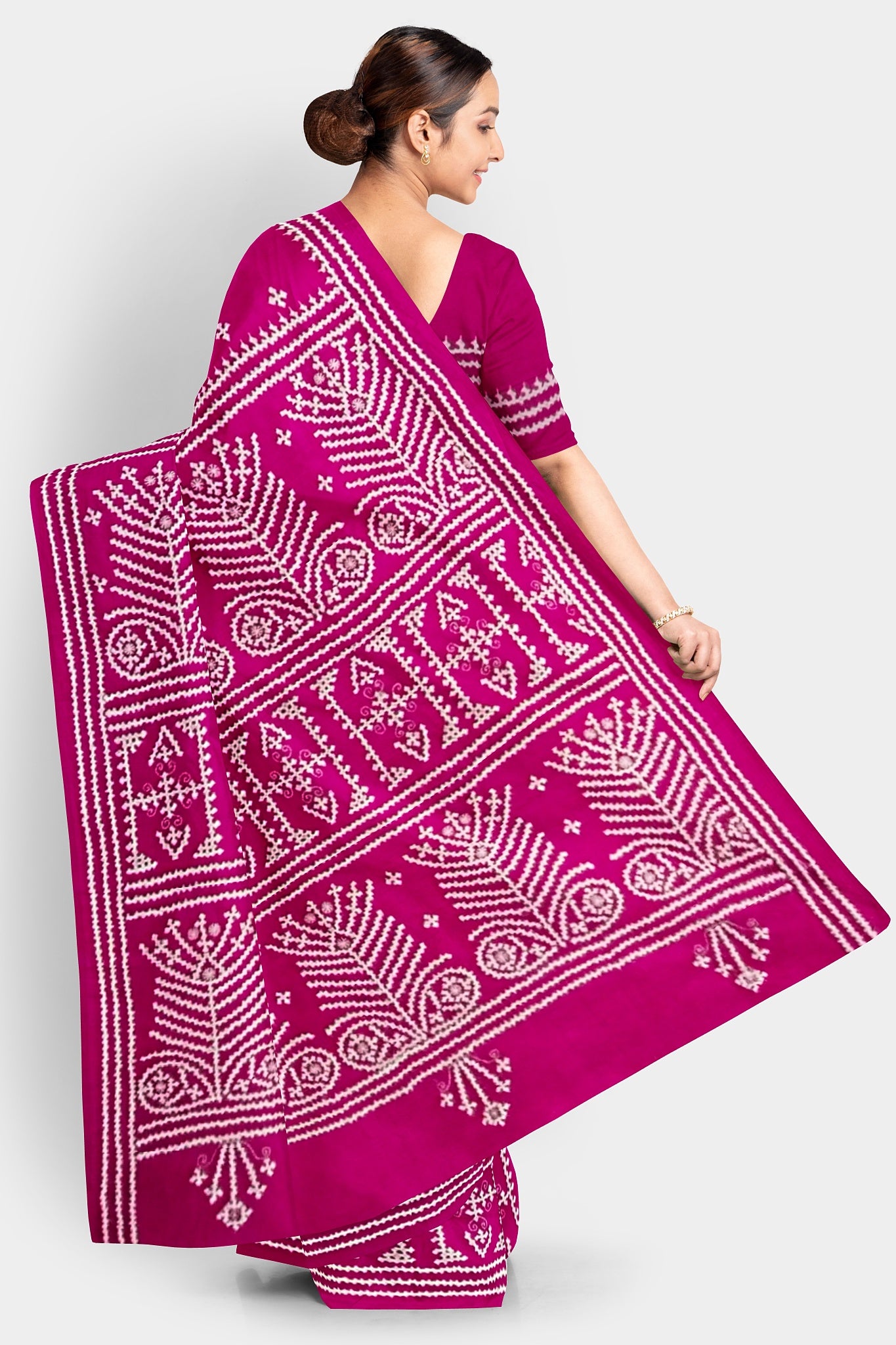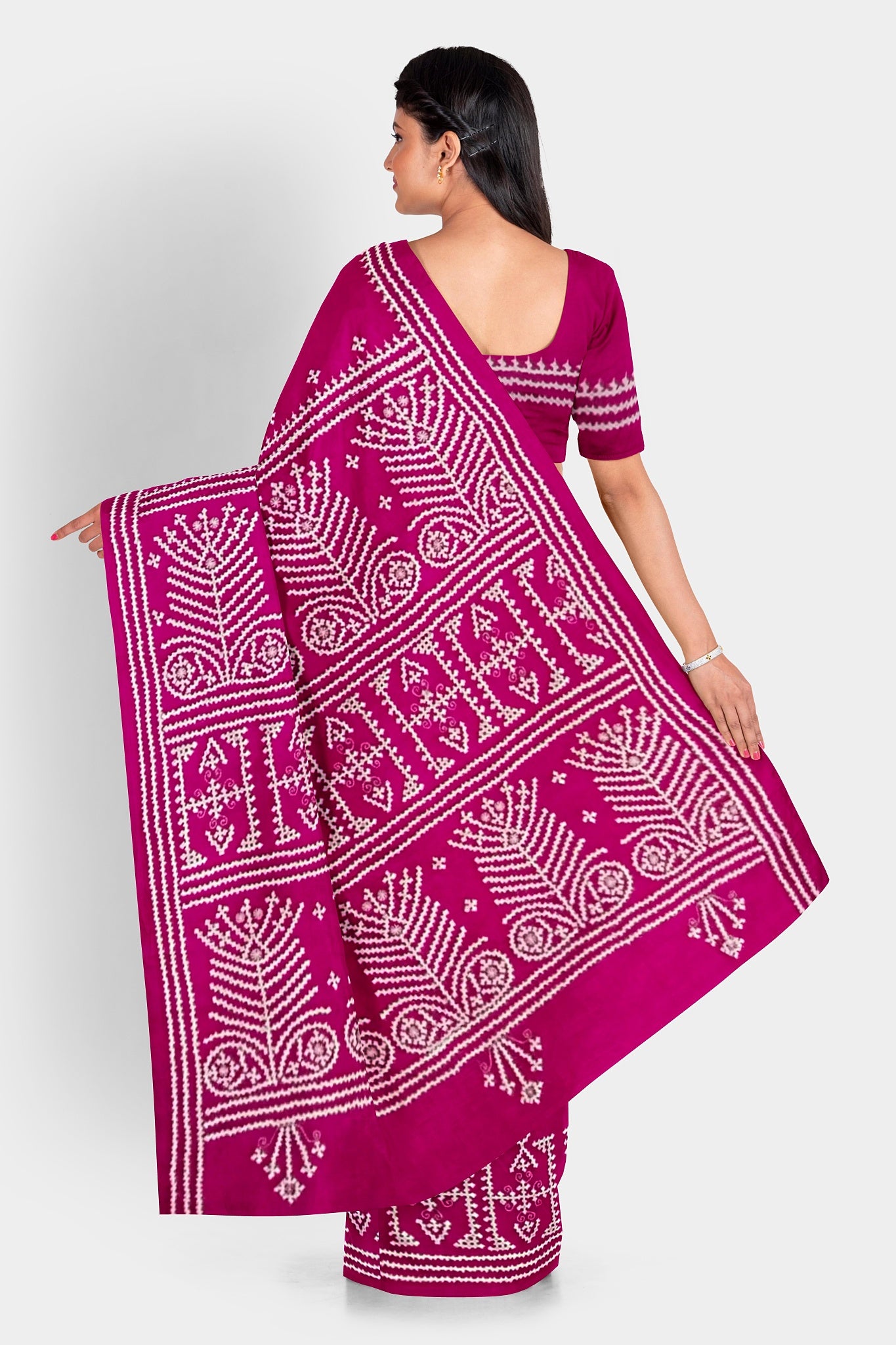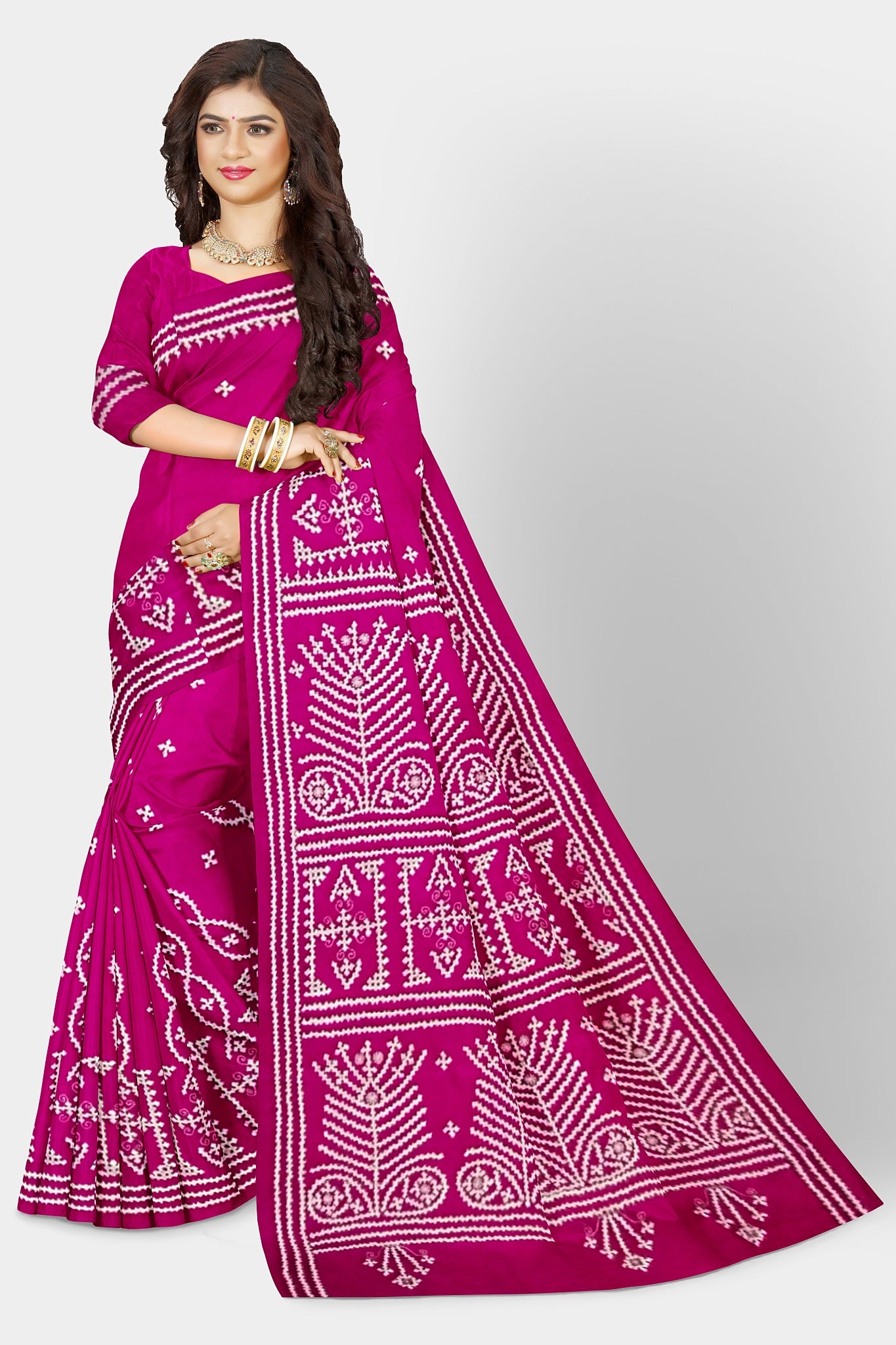 Color : Rani Pink color Saree . White Color Tread Work.