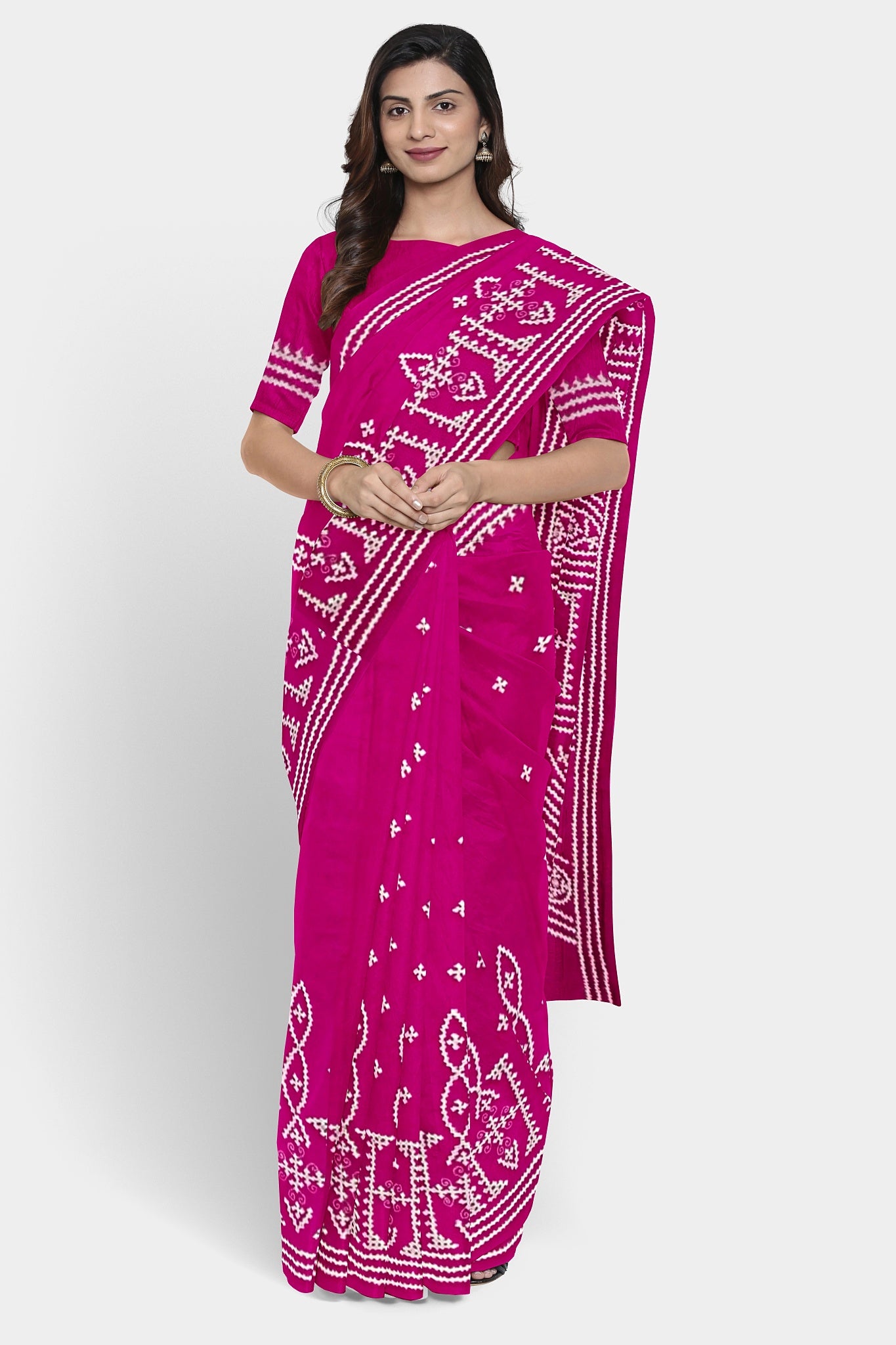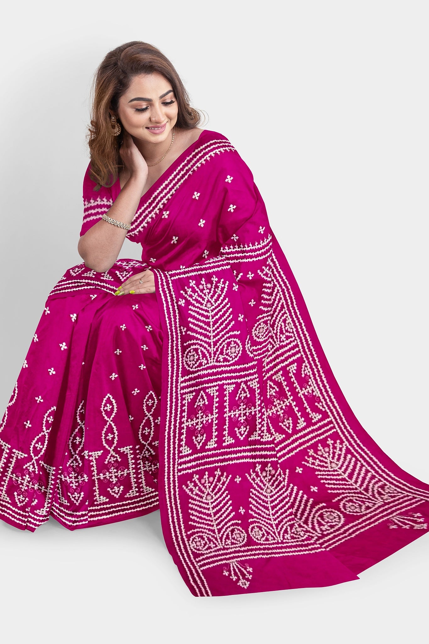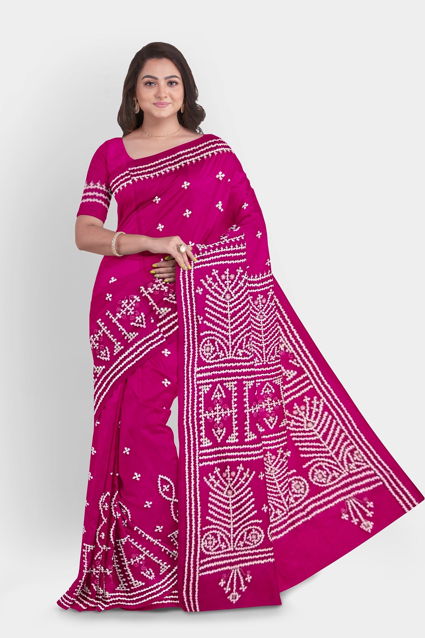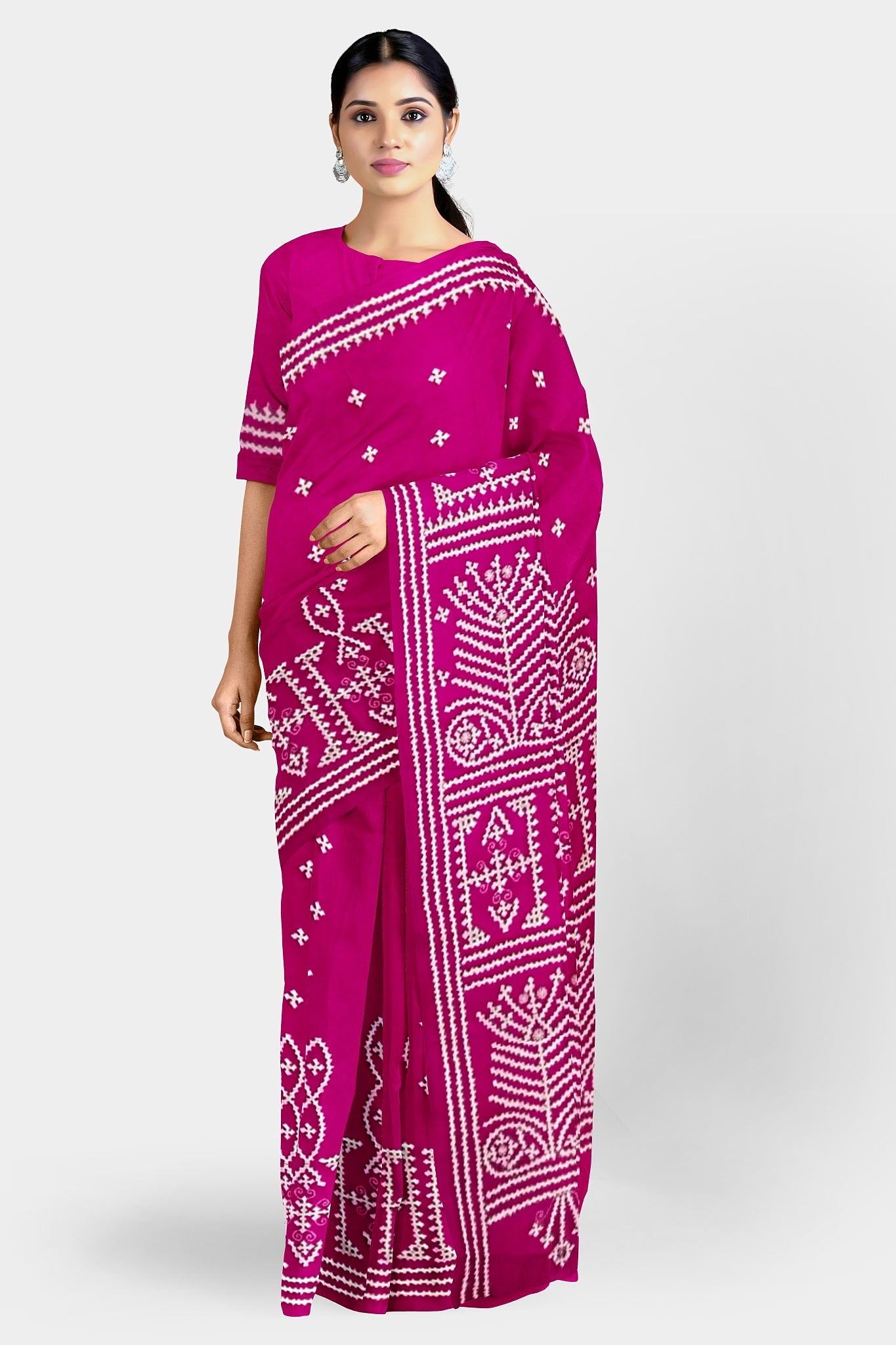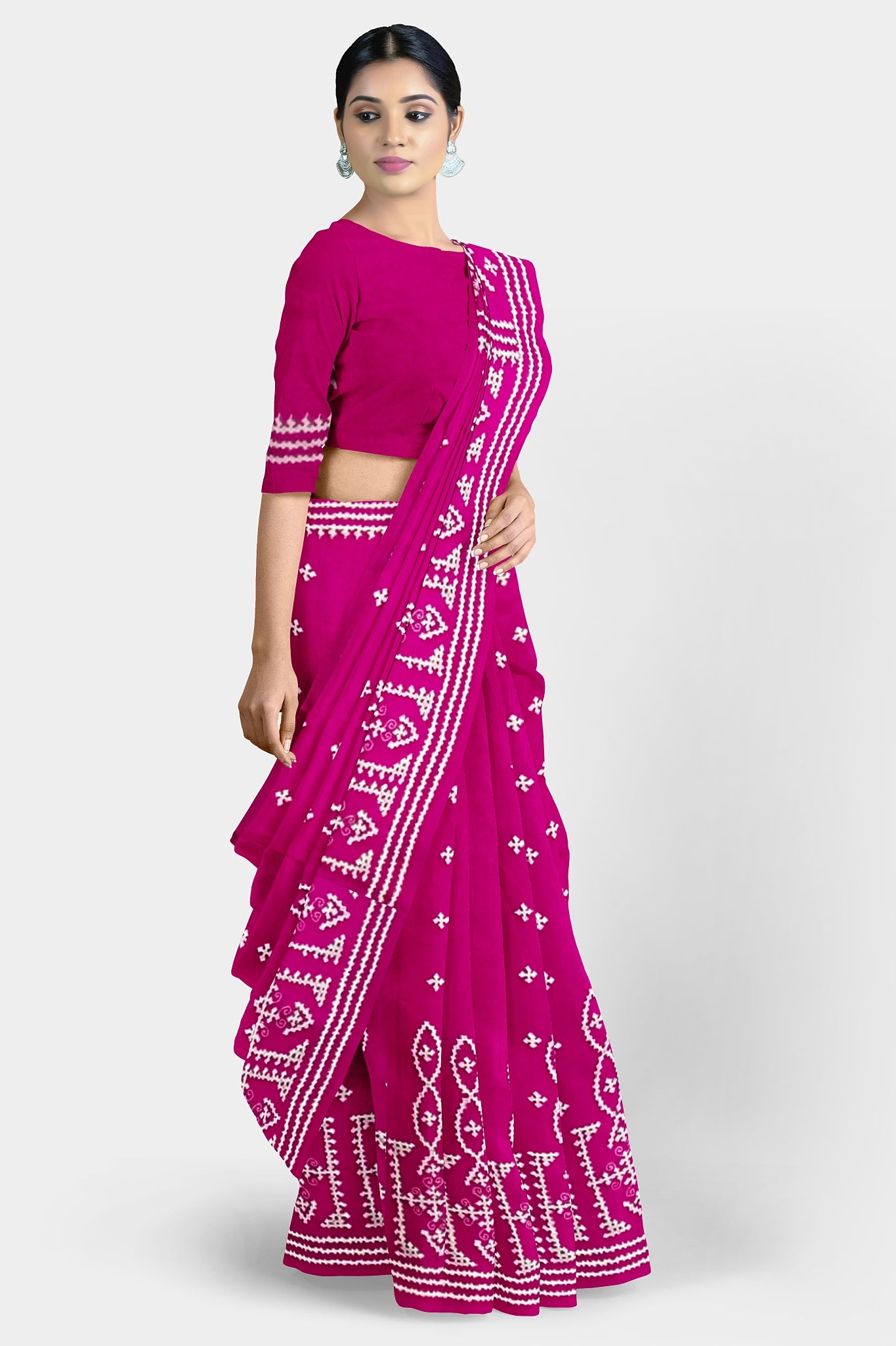 Color : Rani Pink color Saree . White Color Tread Work.