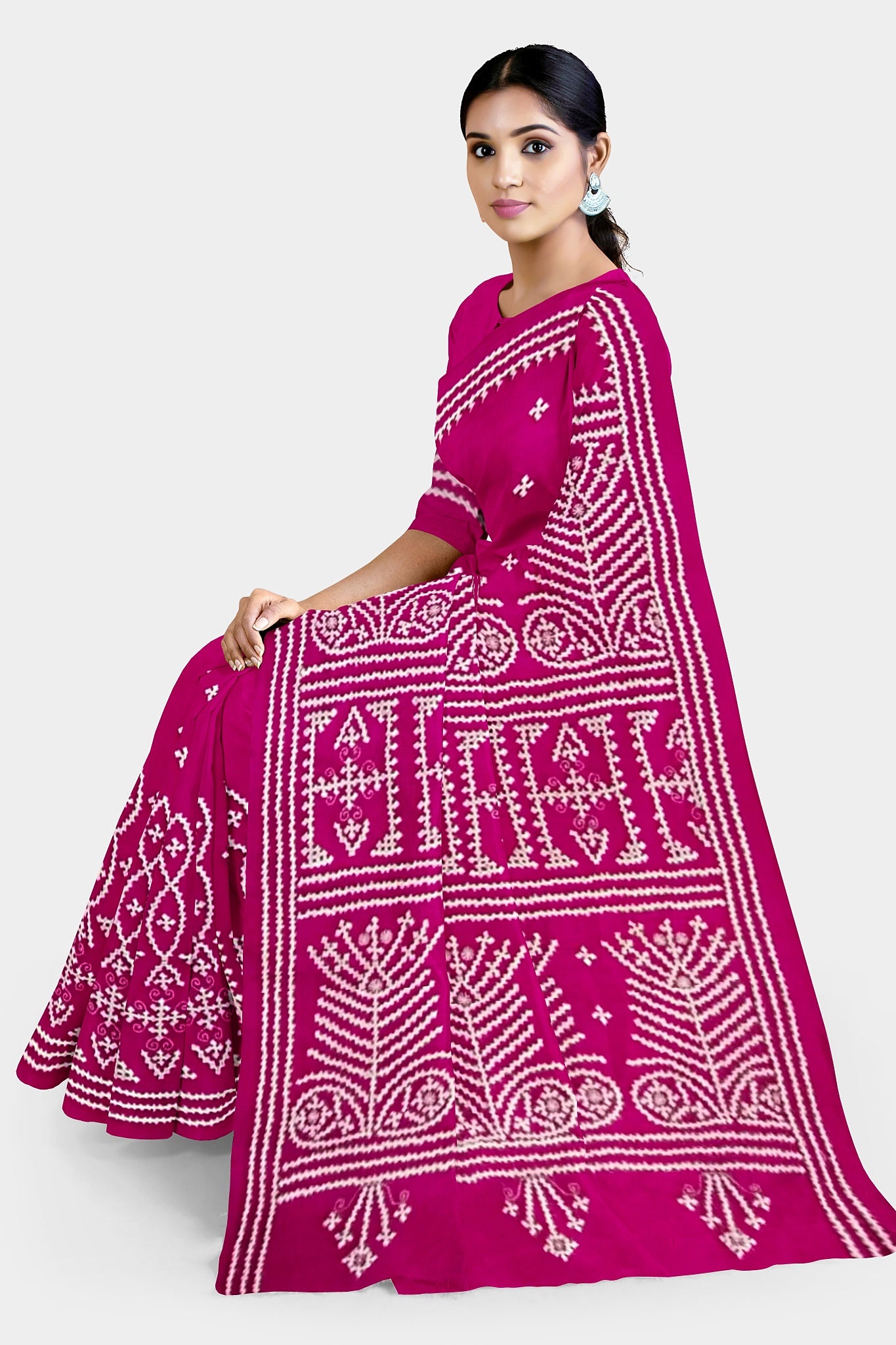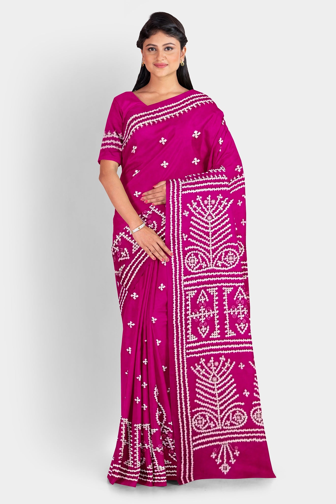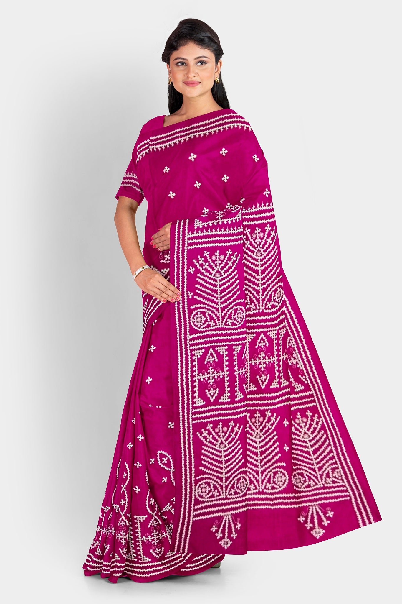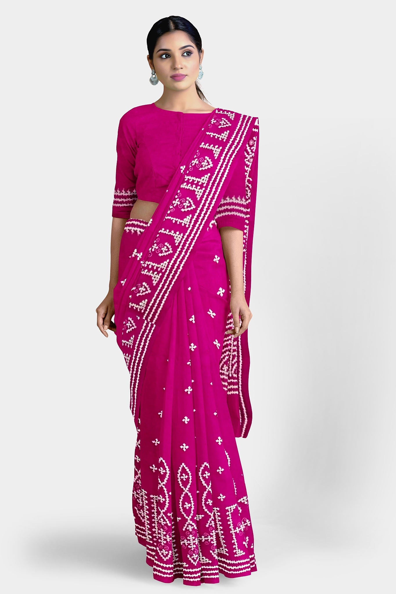 Color : Rani Pink color Saree . White Color Tread Work.