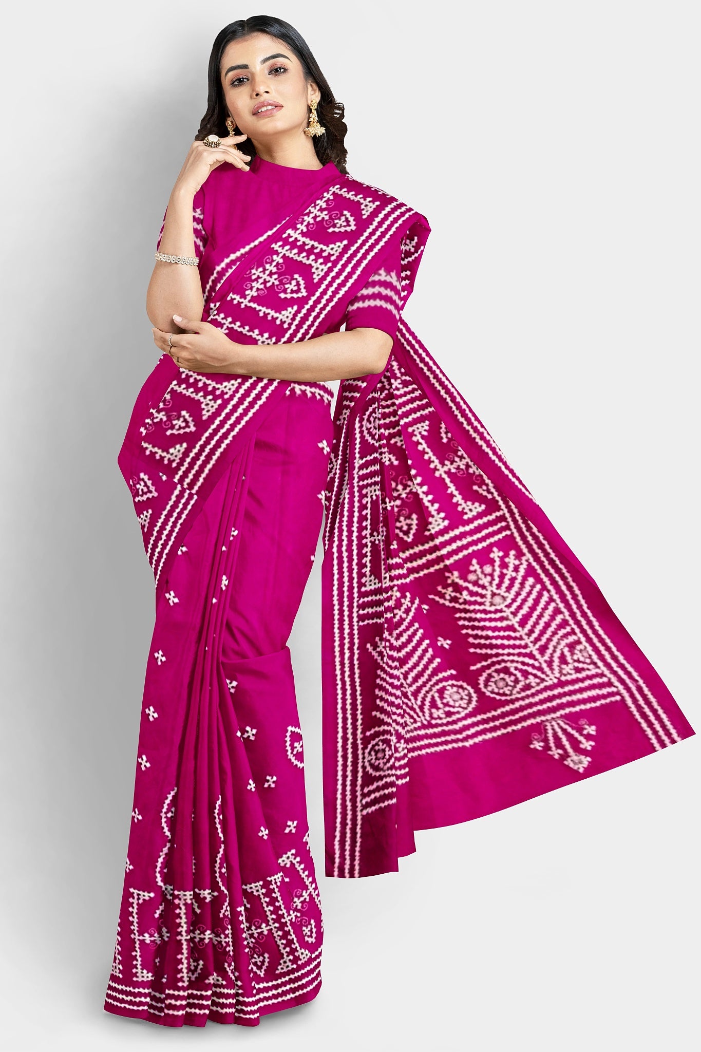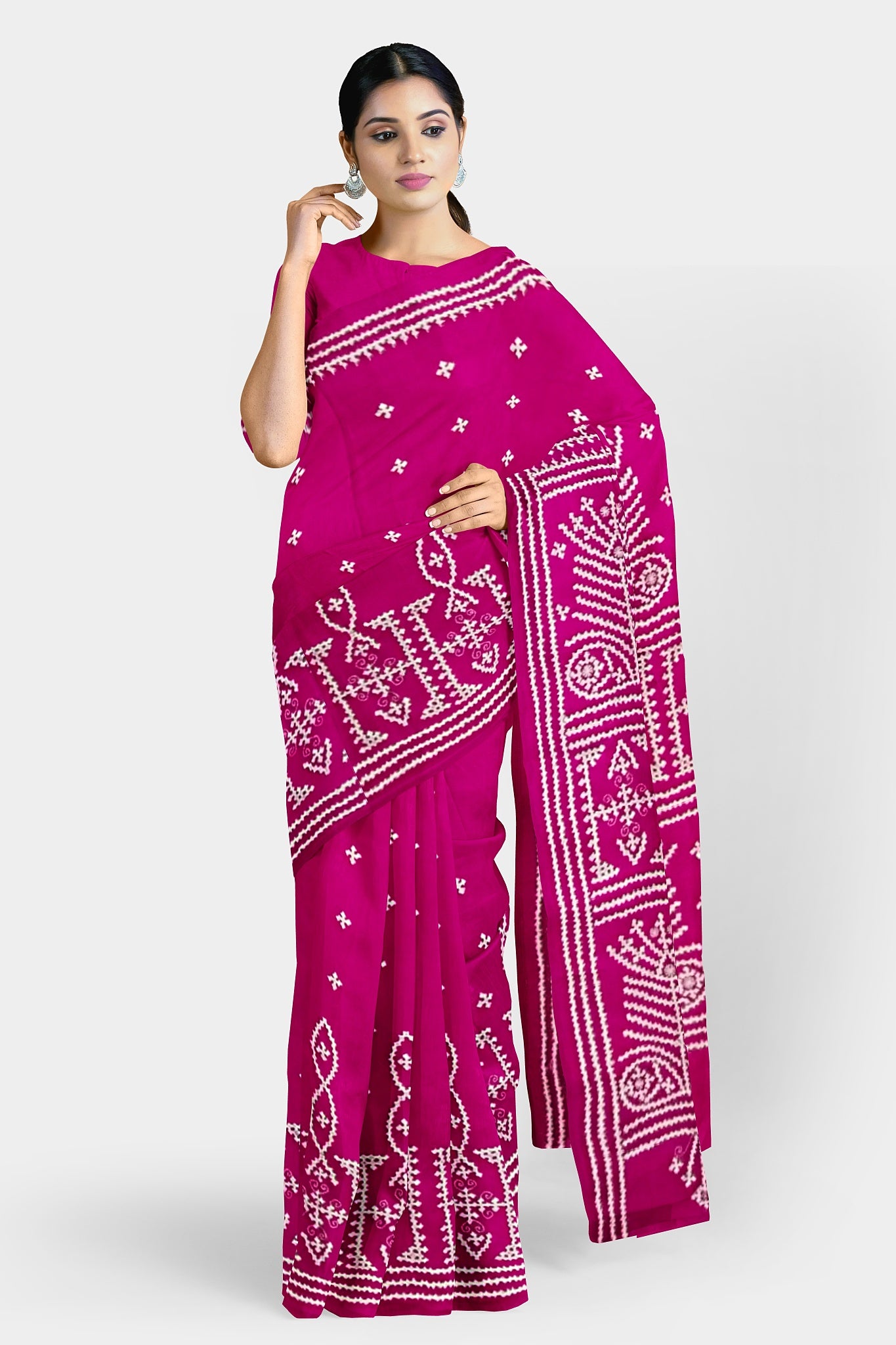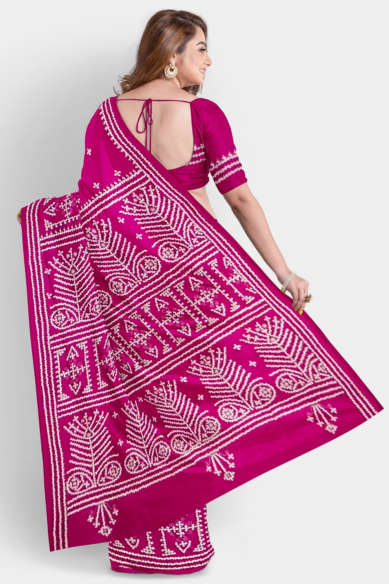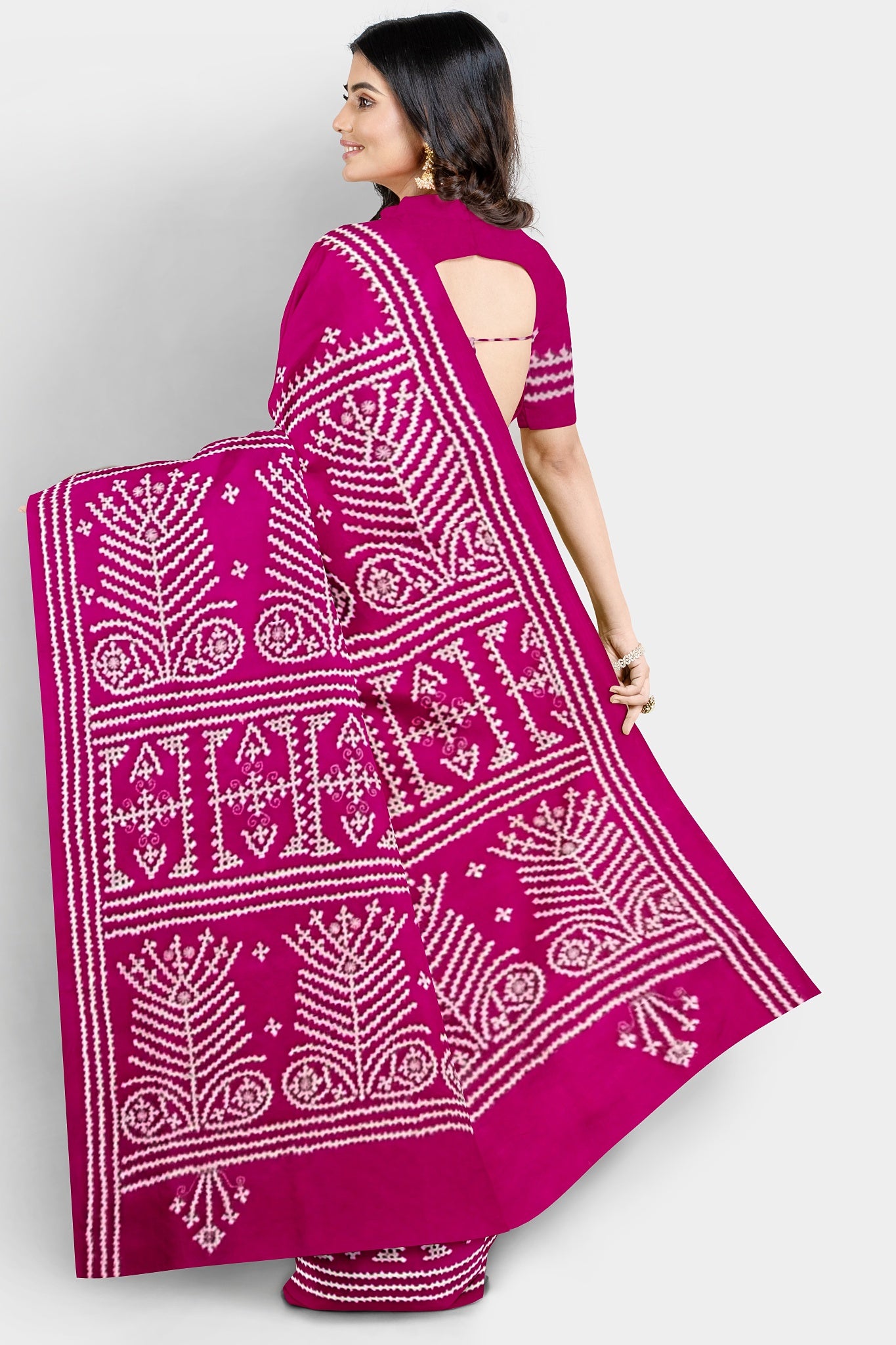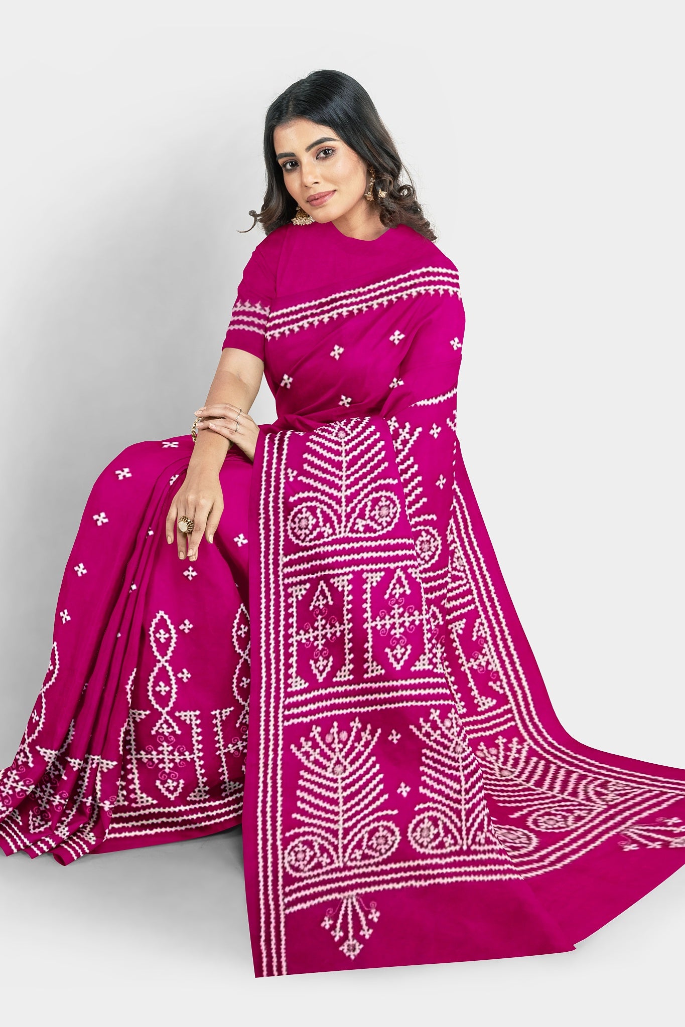 Color : Rani Pink color Saree . White Color Tread Work.