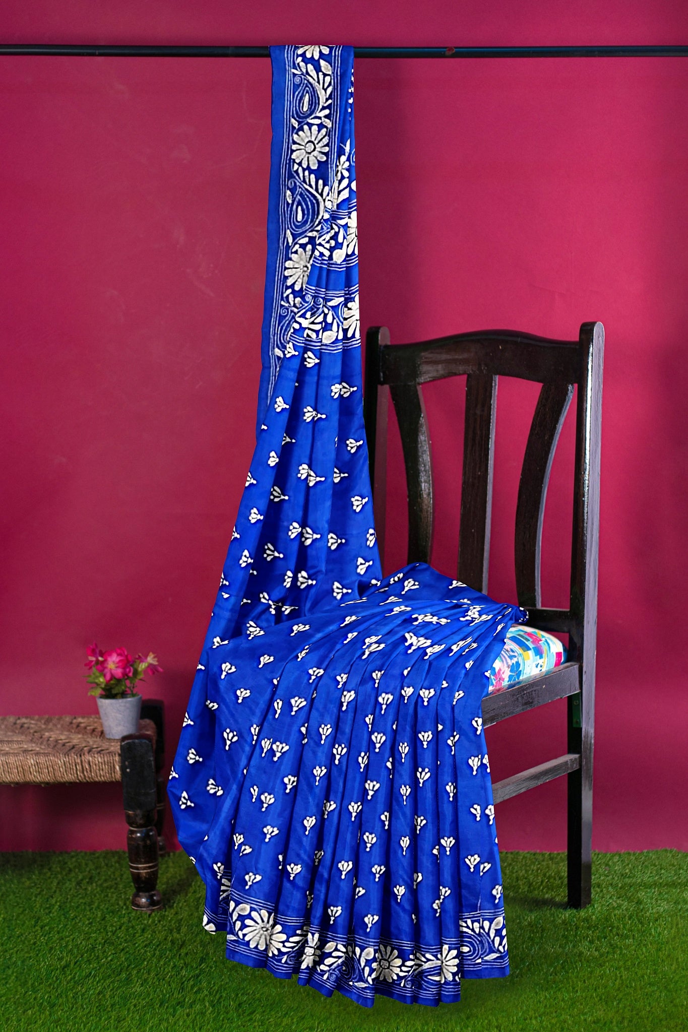 Color : Royal Blue color Saree . White Color Tread Work.