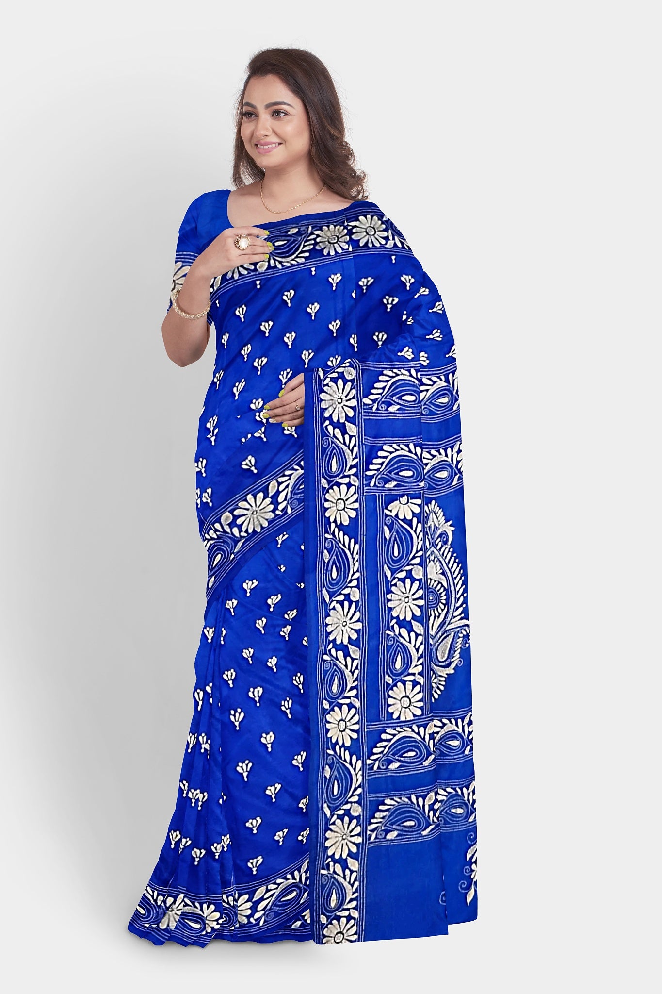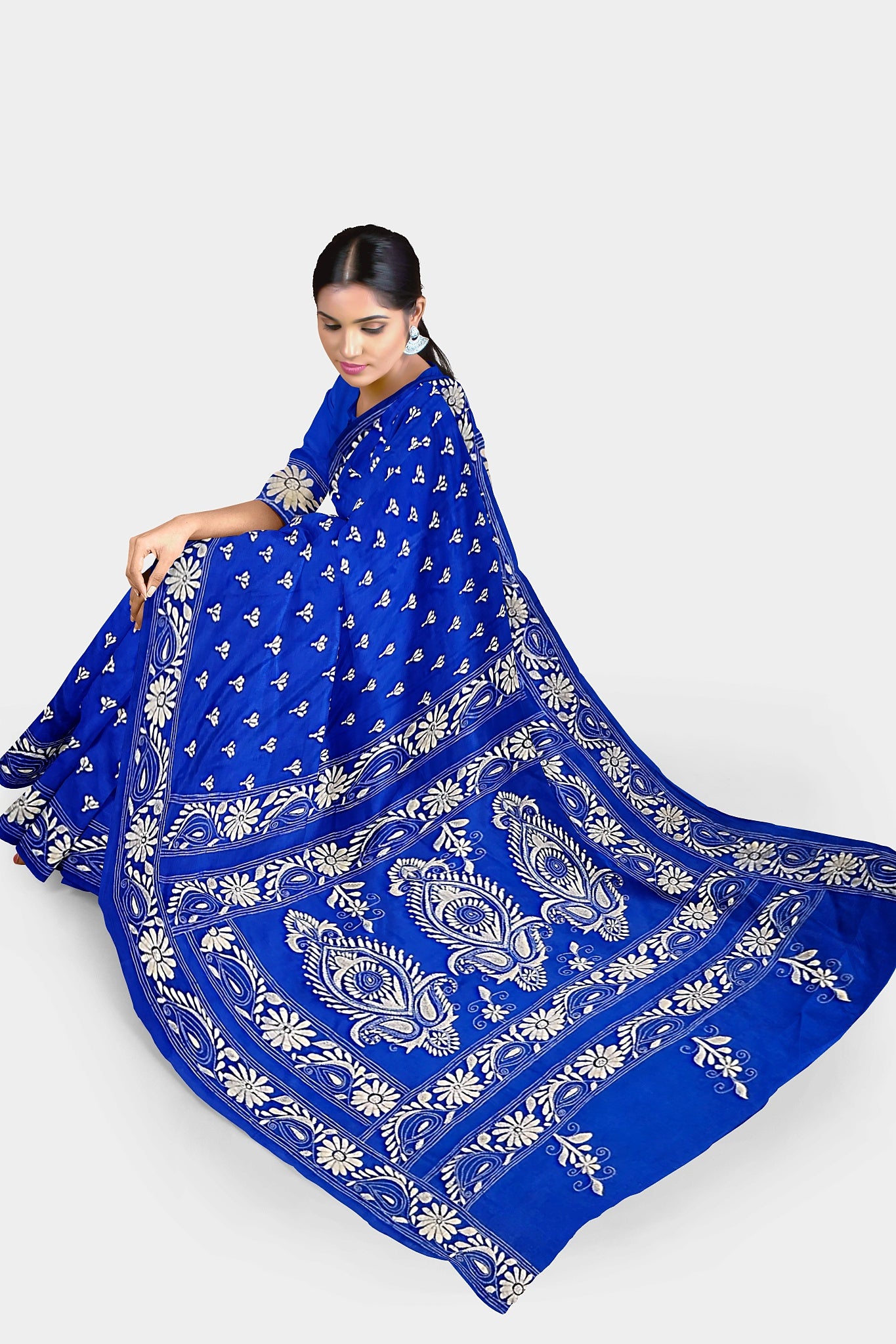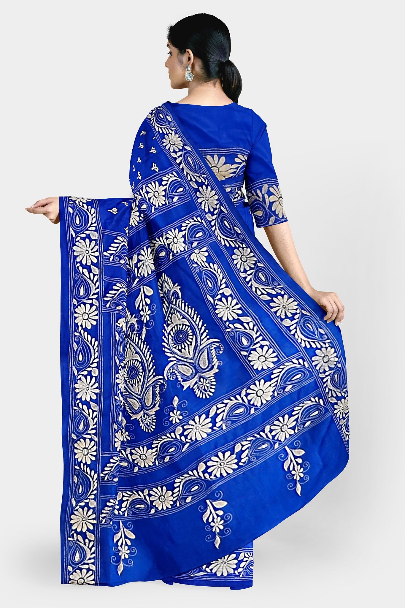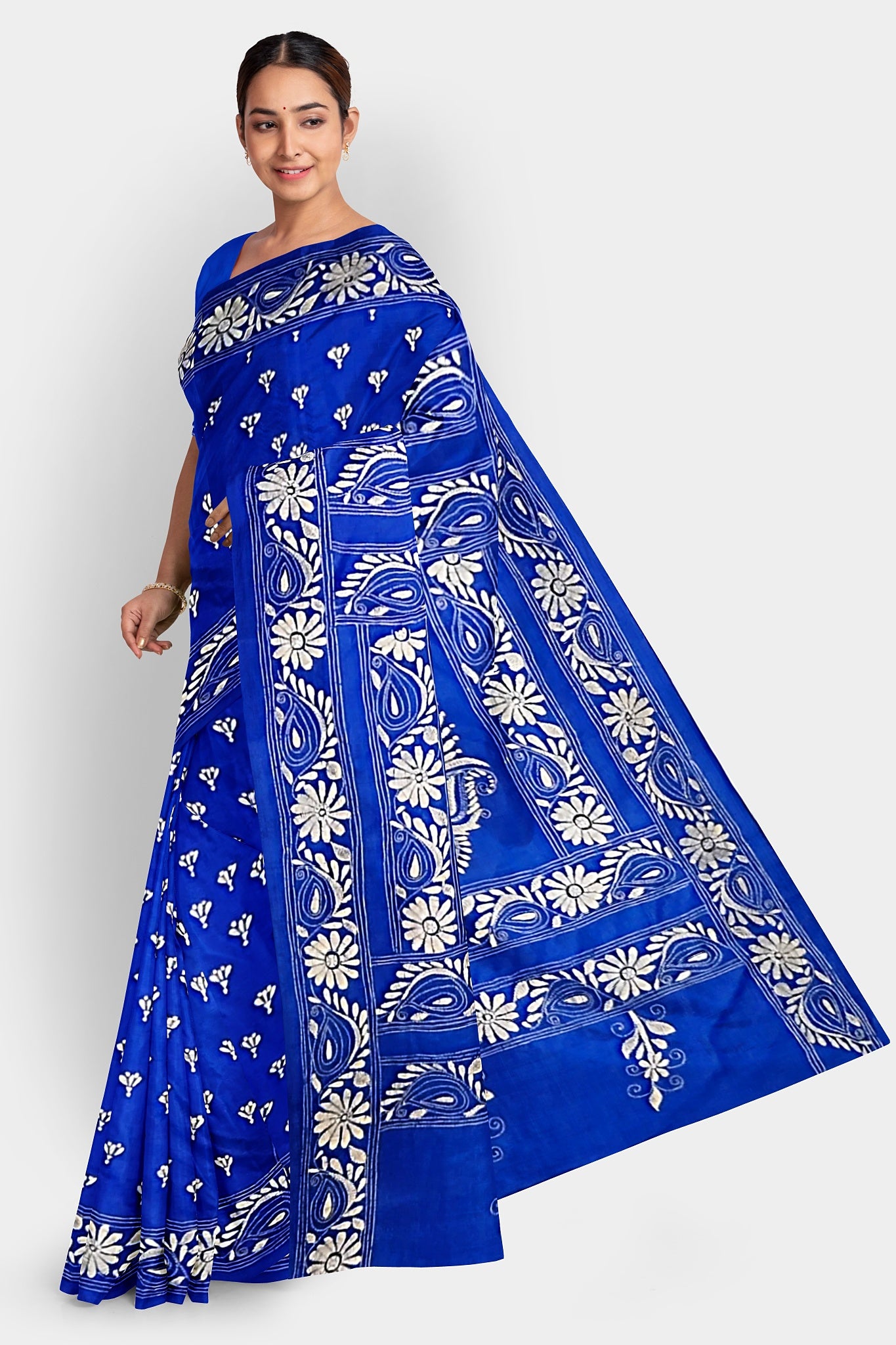 Kantha Stitch: Stylish Blended Silk Saree showcasing Traditional Artistry in Modern Indian Fashion