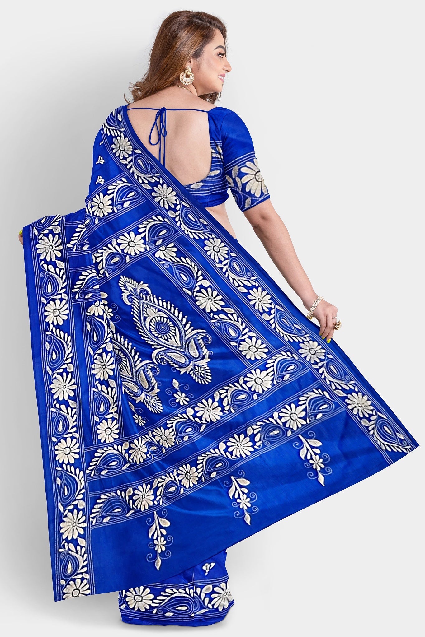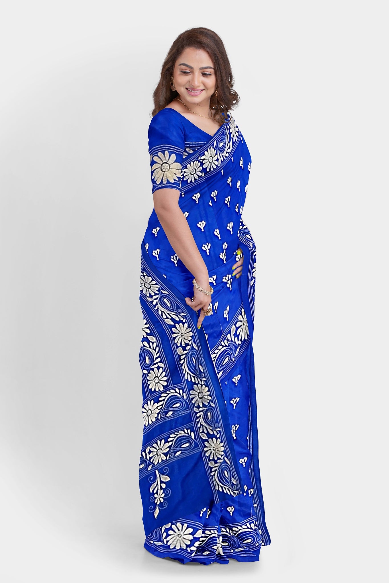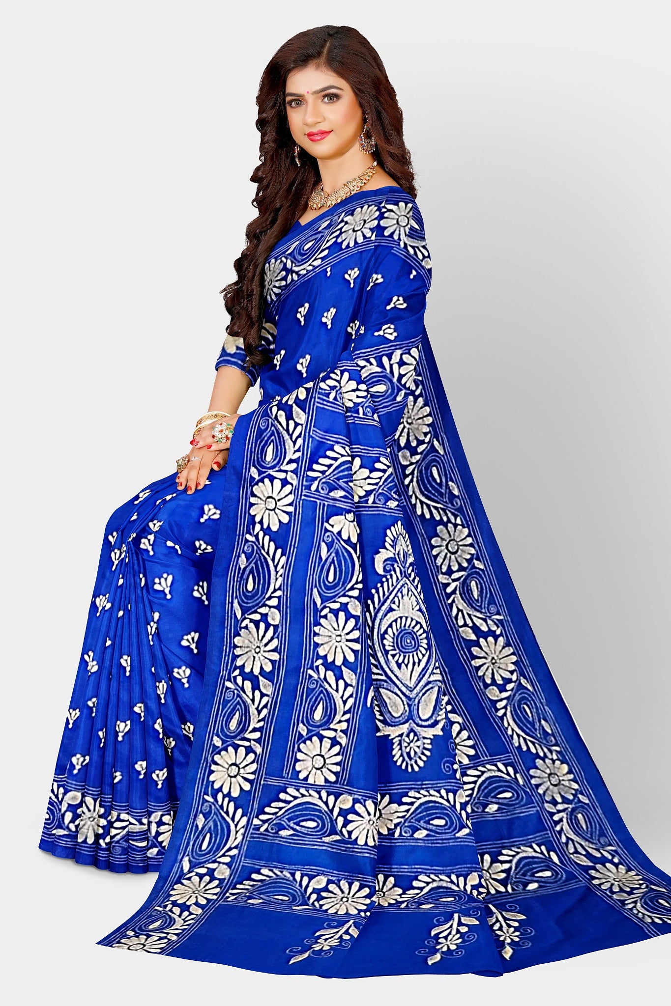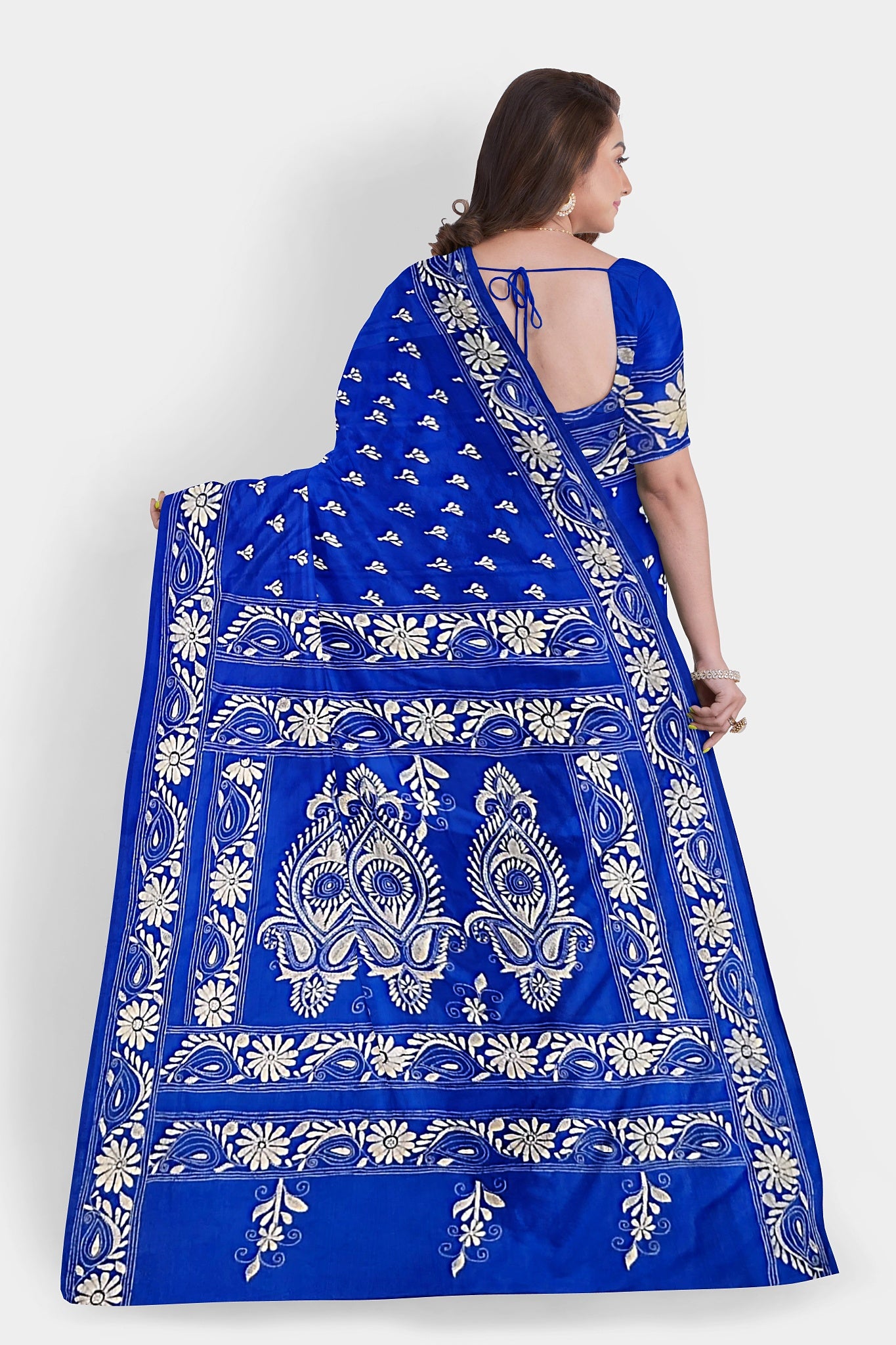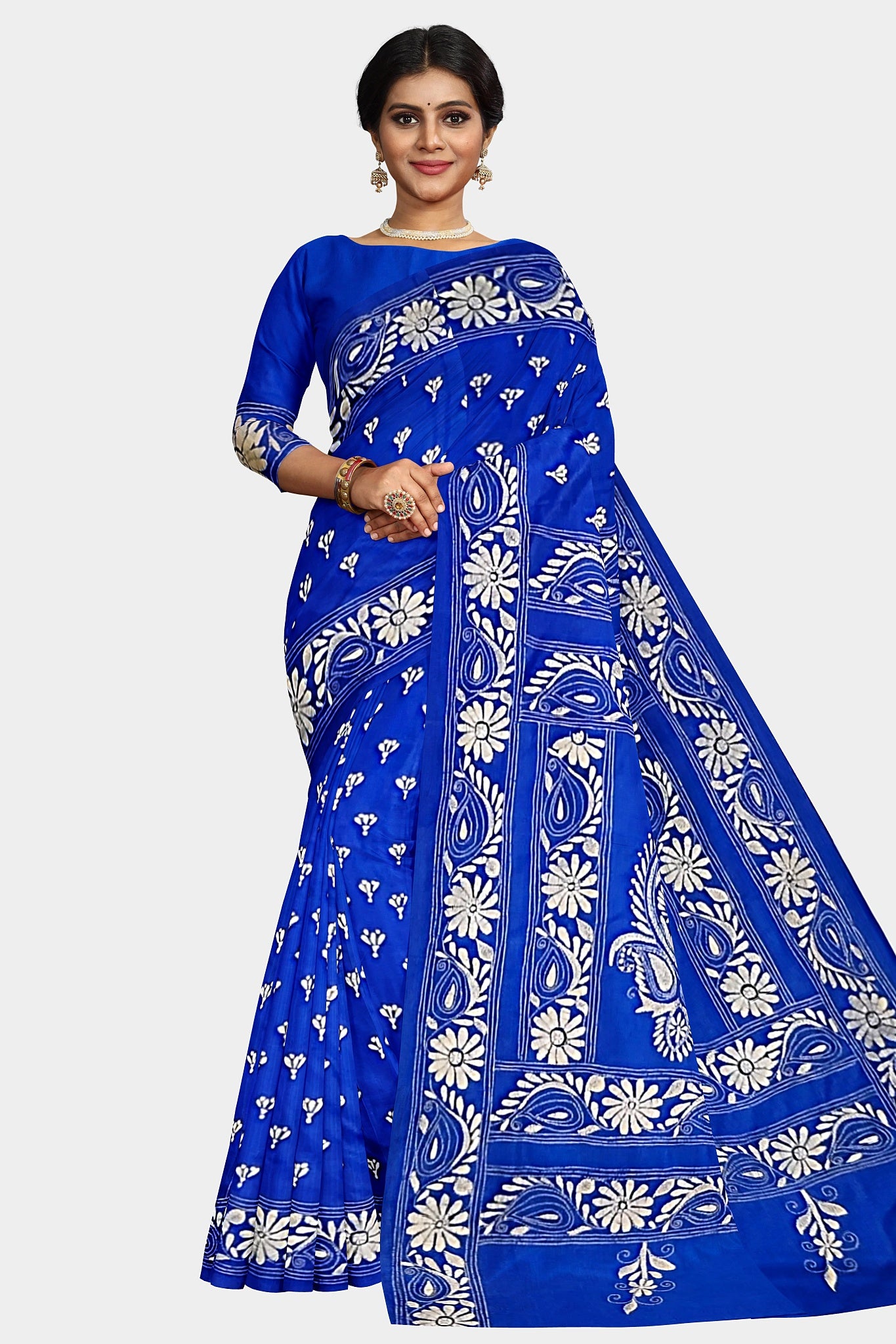 Kantha Stitch: Stylish Blended Silk Saree showcasing Traditional Artistry in Modern Indian Fashion