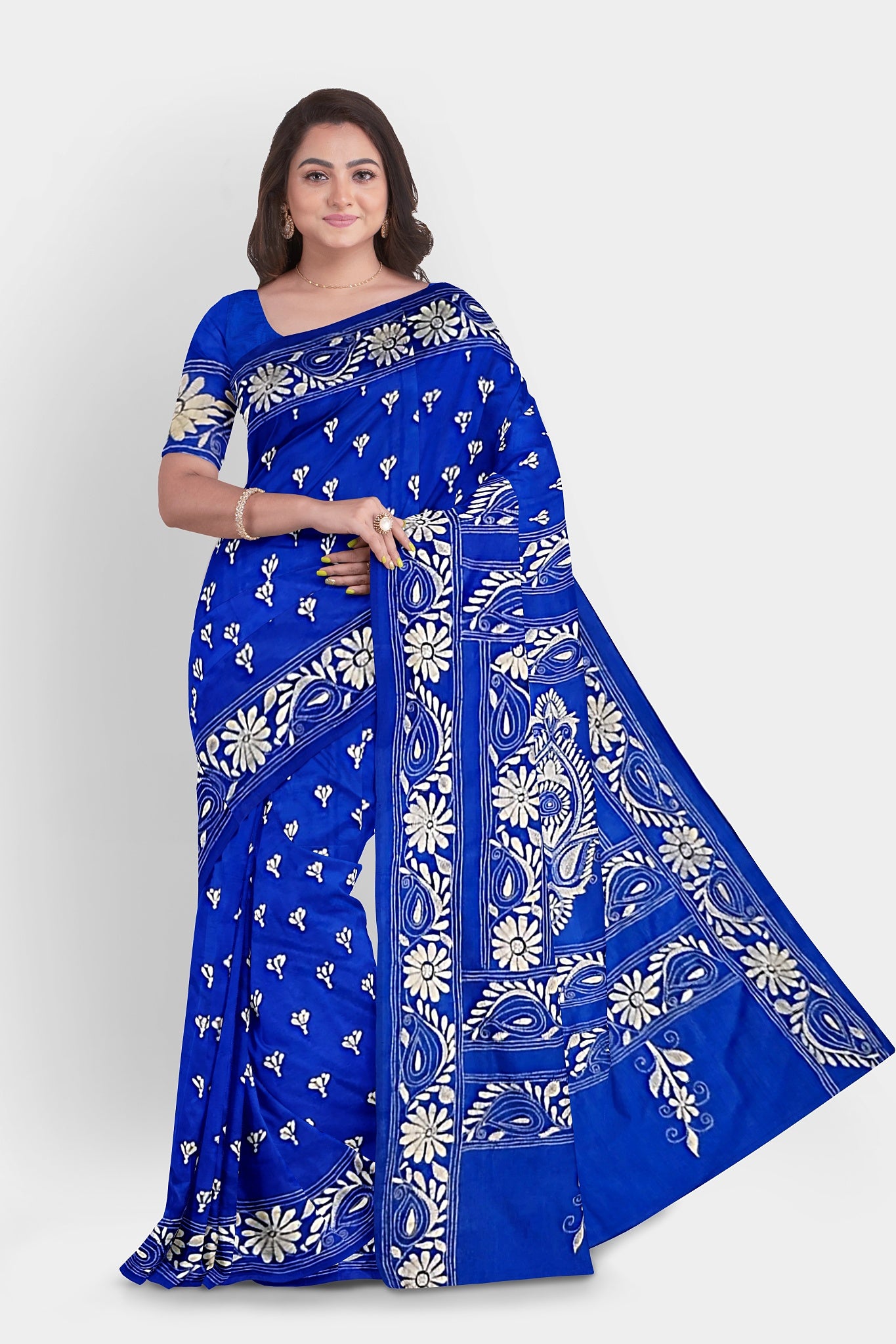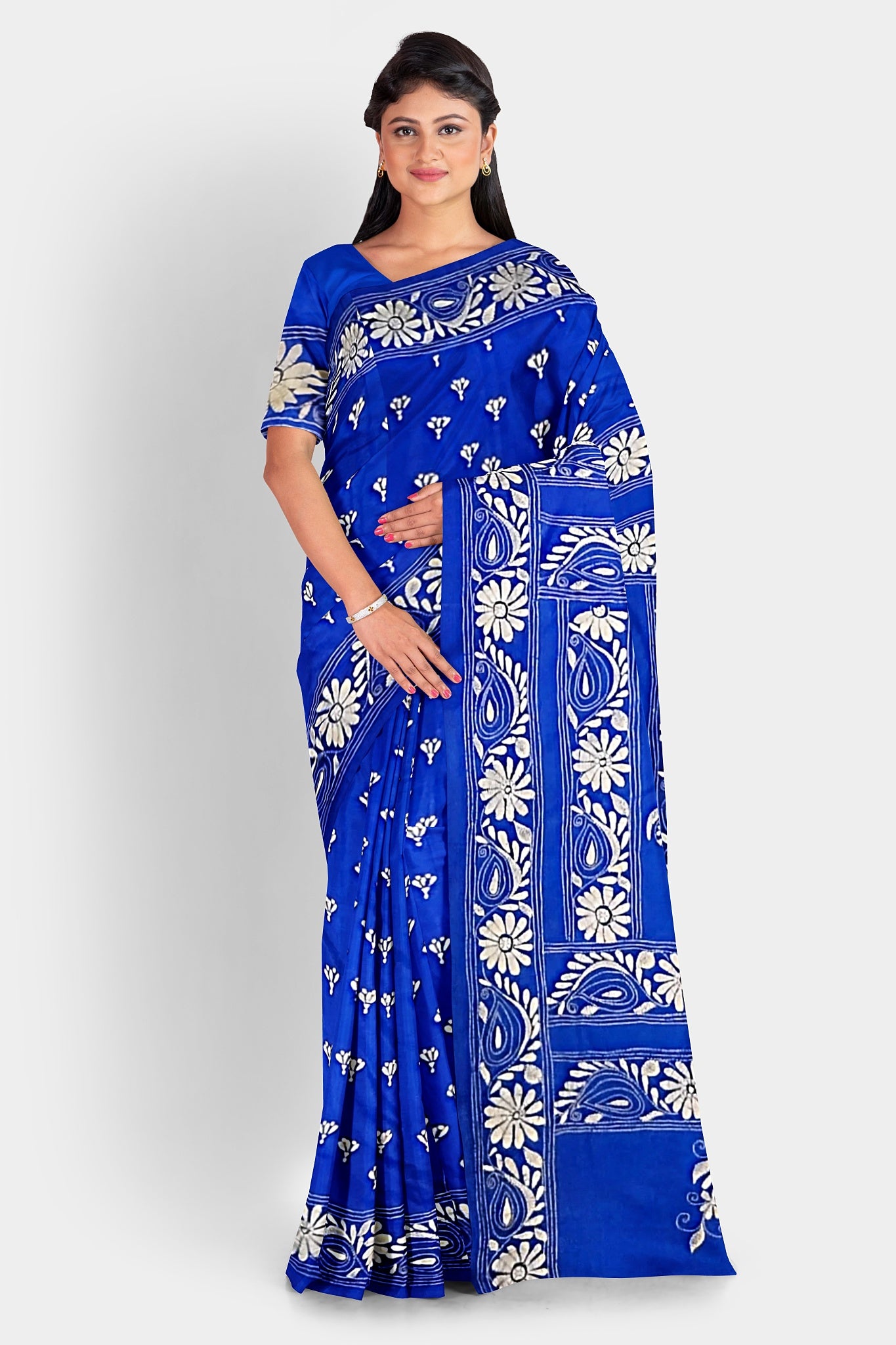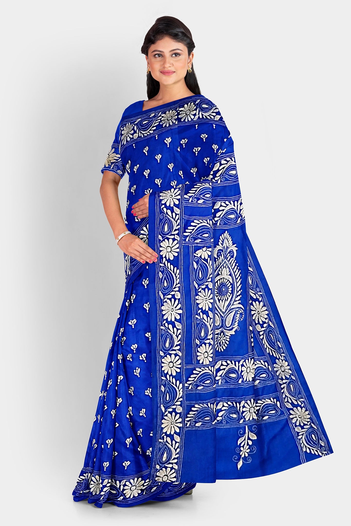 Elevate your style with our exquisite collection of Kantha Stitch Sarees for women. Crafted with the latest designs and showcasing the traditional artistry of Santiniketan, these silk sarees are a perfect blend of elegance and cultural heritage. Each saree is meticulously hand-stitched with intricate Kantha embroidery, adding a touch of uniqueness to every piece. Shop now and indulge in the timeless beauty of Kantha Stitched Silk Sarees, the epitome of grace and sophistication.