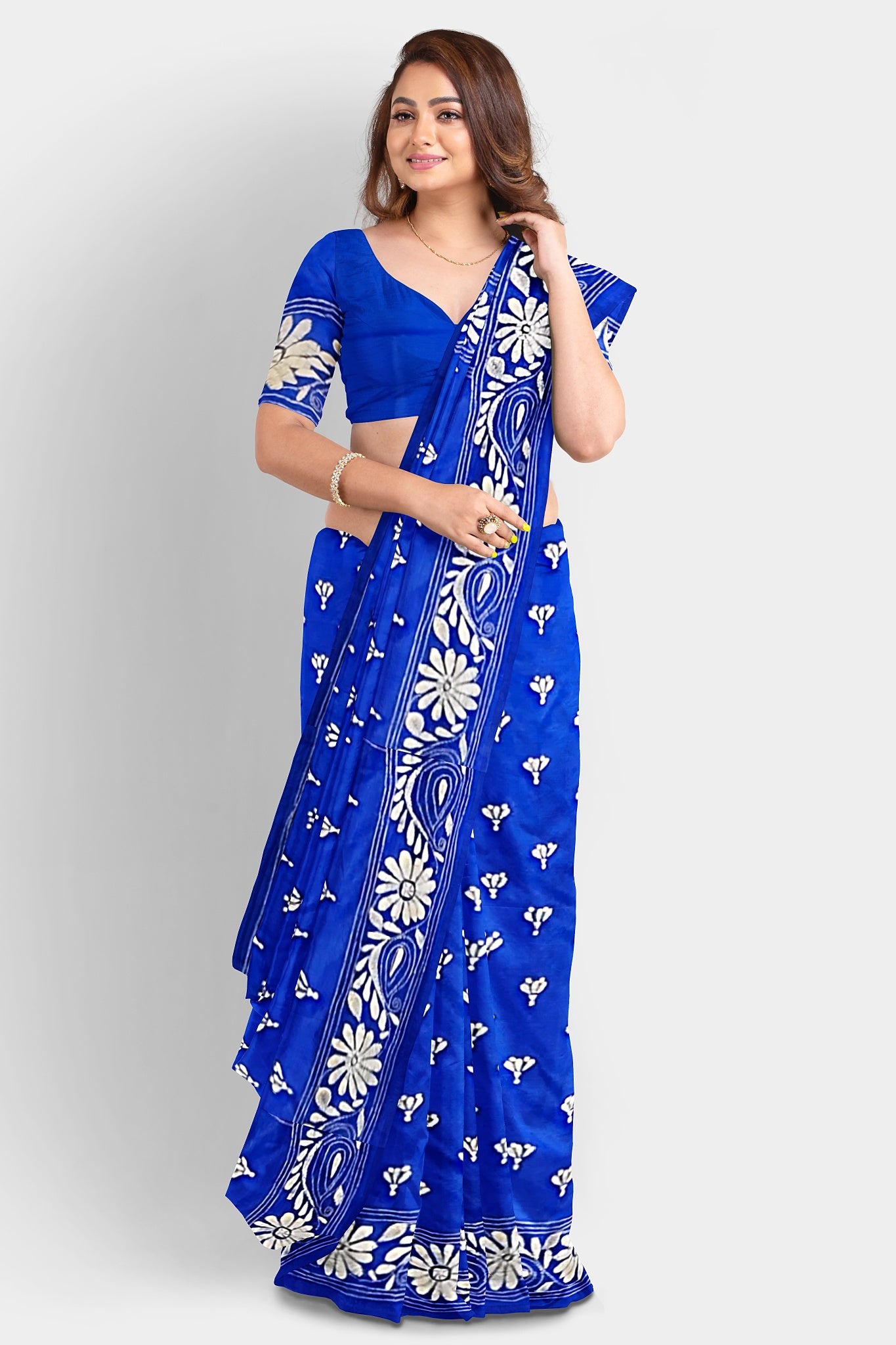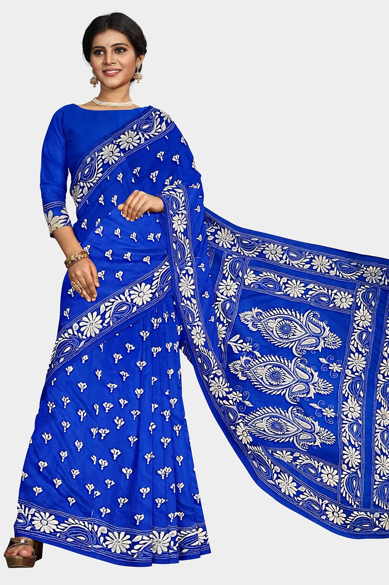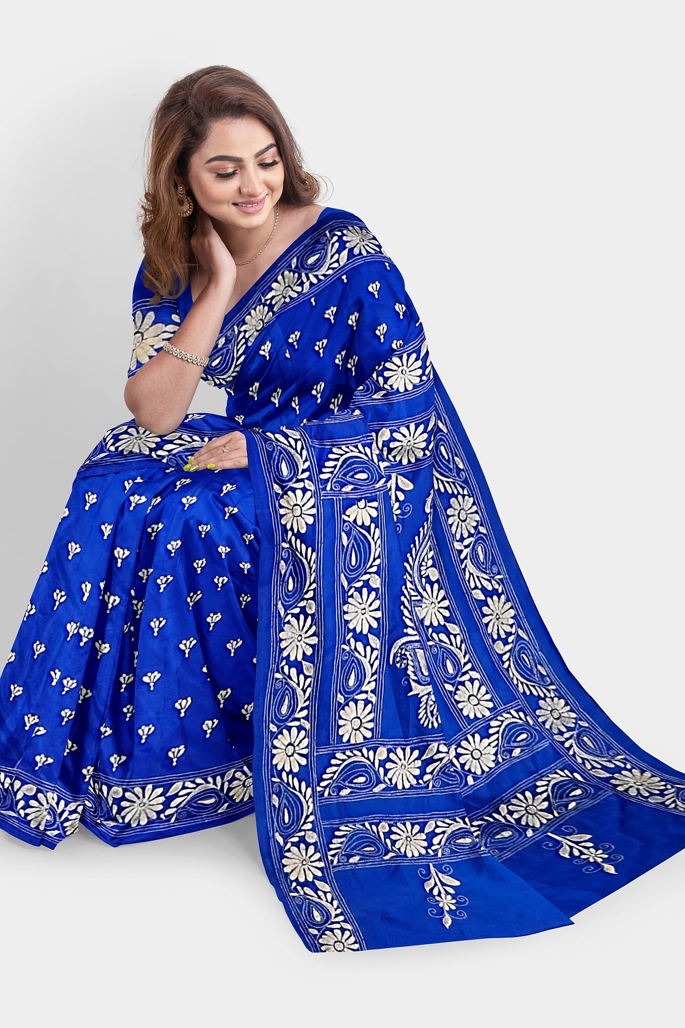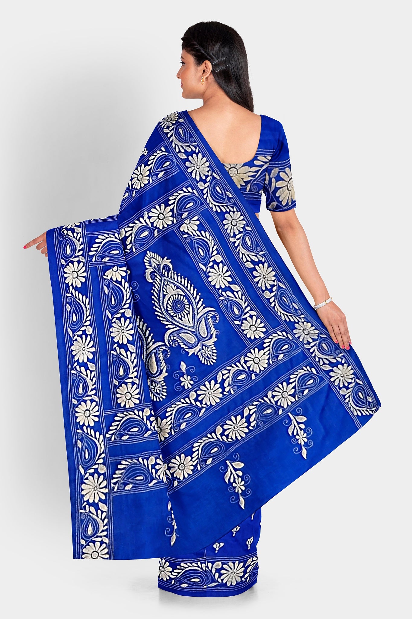 Elevate your style with our exquisite collection of Kantha Stitch Sarees for women. Crafted with the latest designs and showcasing the traditional artistry of Santiniketan, these silk sarees are a perfect blend of elegance and cultural heritage. Each saree is meticulously hand-stitched with intricate Kantha embroidery, adding a touch of uniqueness to every piece. Shop now and indulge in the timeless beauty of Kantha Stitched Silk Sarees, the epitome of grace and sophistication.