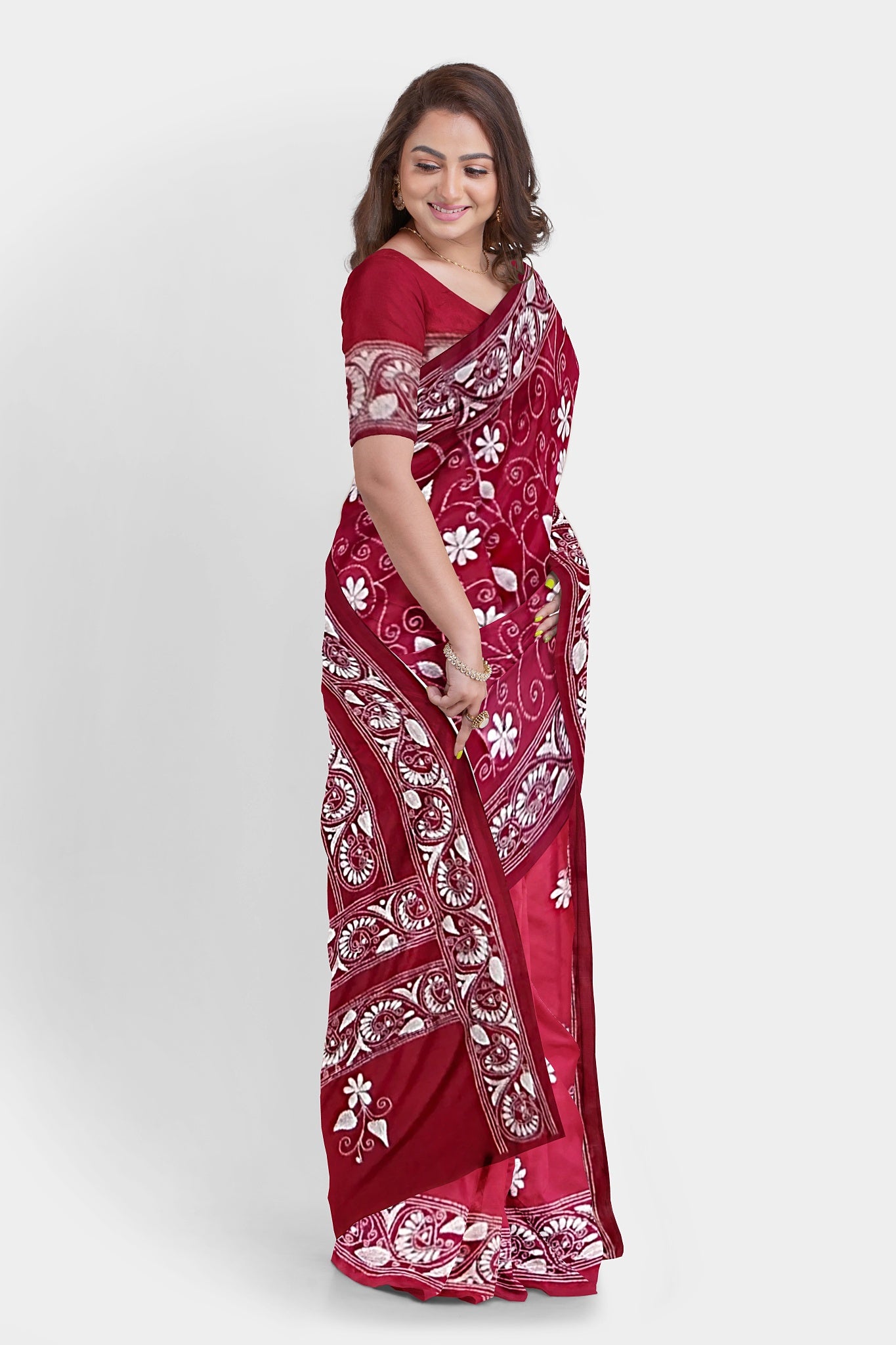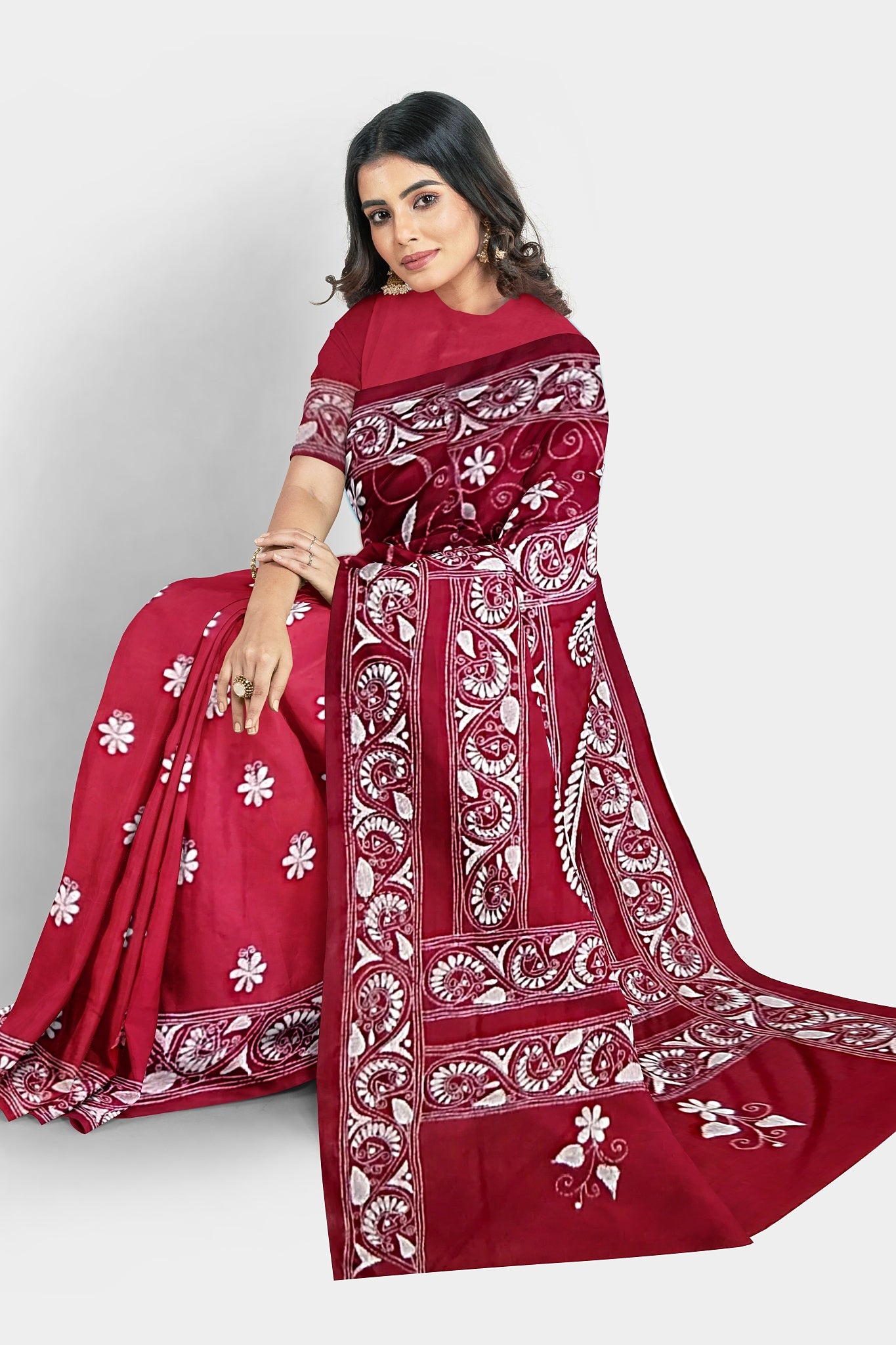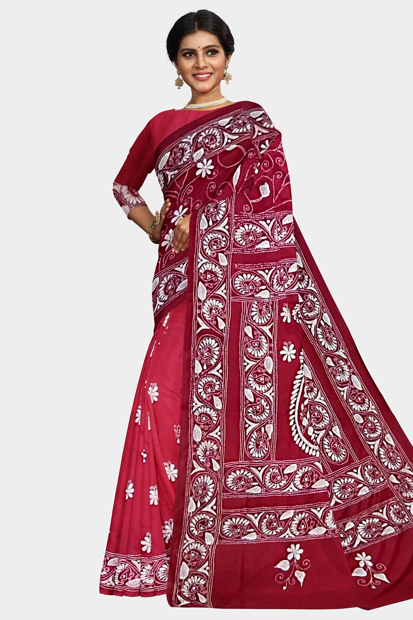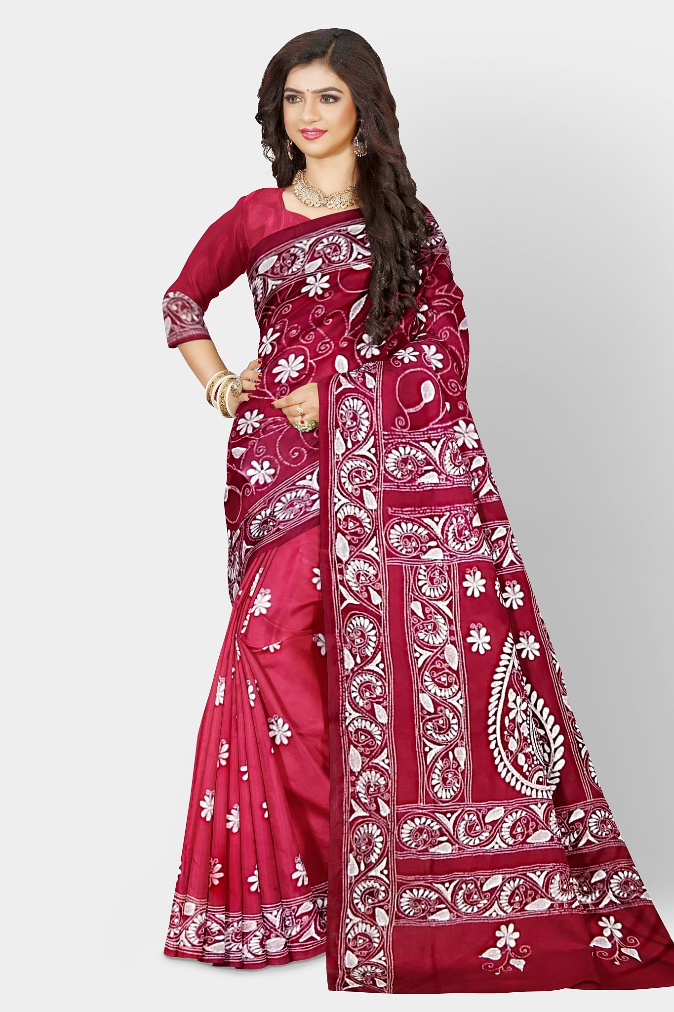 Elevate your style with our exquisite collection of Kantha Stitch Sarees for women. Crafted with the latest designs and showcasing the traditional artistry of Santiniketan, these silk sarees are a perfect blend of elegance and cultural heritage. Each saree is meticulously hand-stitched with intricate Kantha embroidery, adding a touch of uniqueness to every piece. Shop now and indulge in the timeless beauty of Kantha Stitched Silk Sarees, the epitome of grace and sophistication.