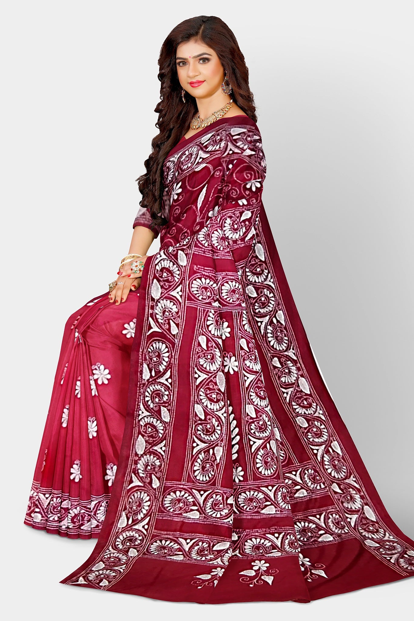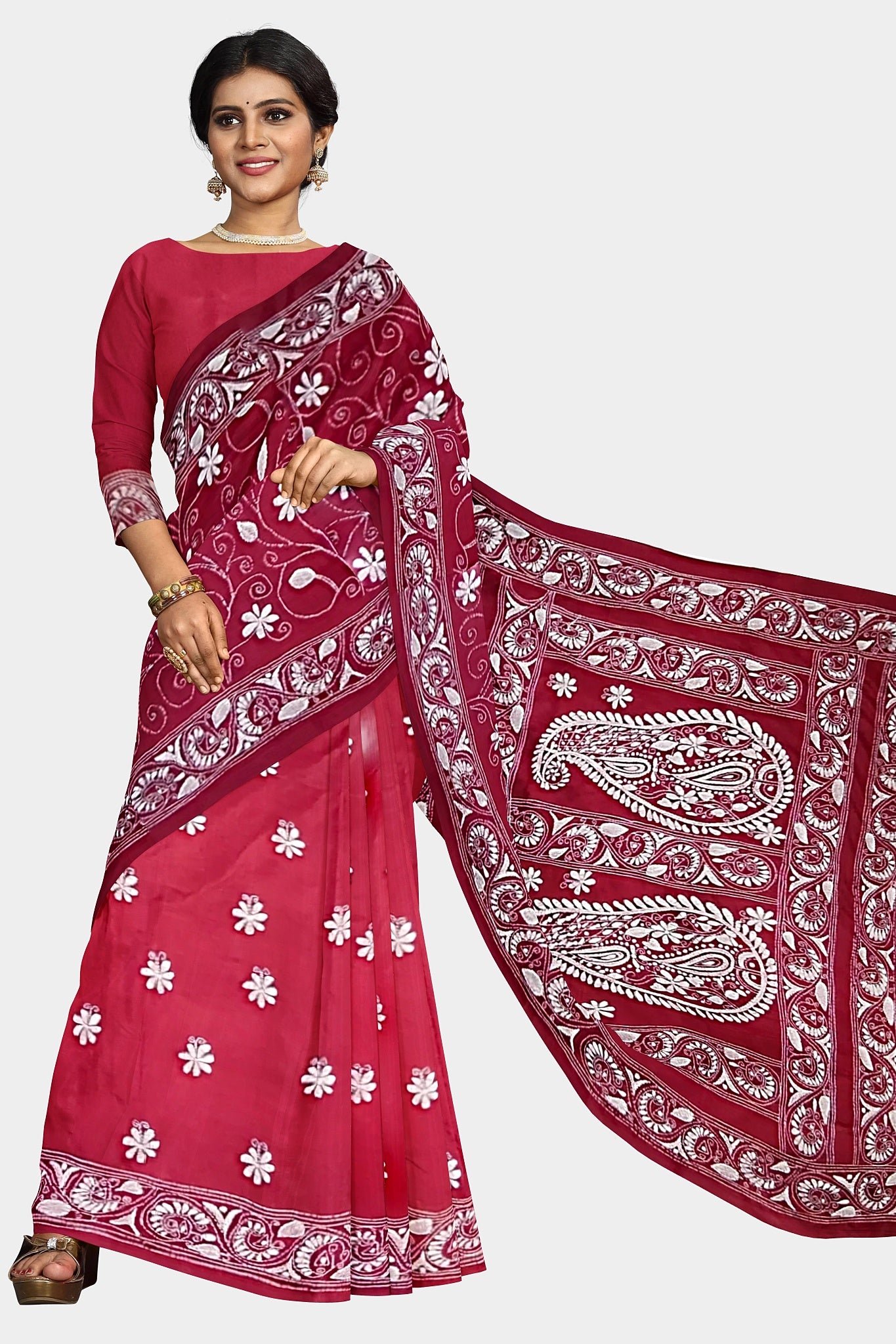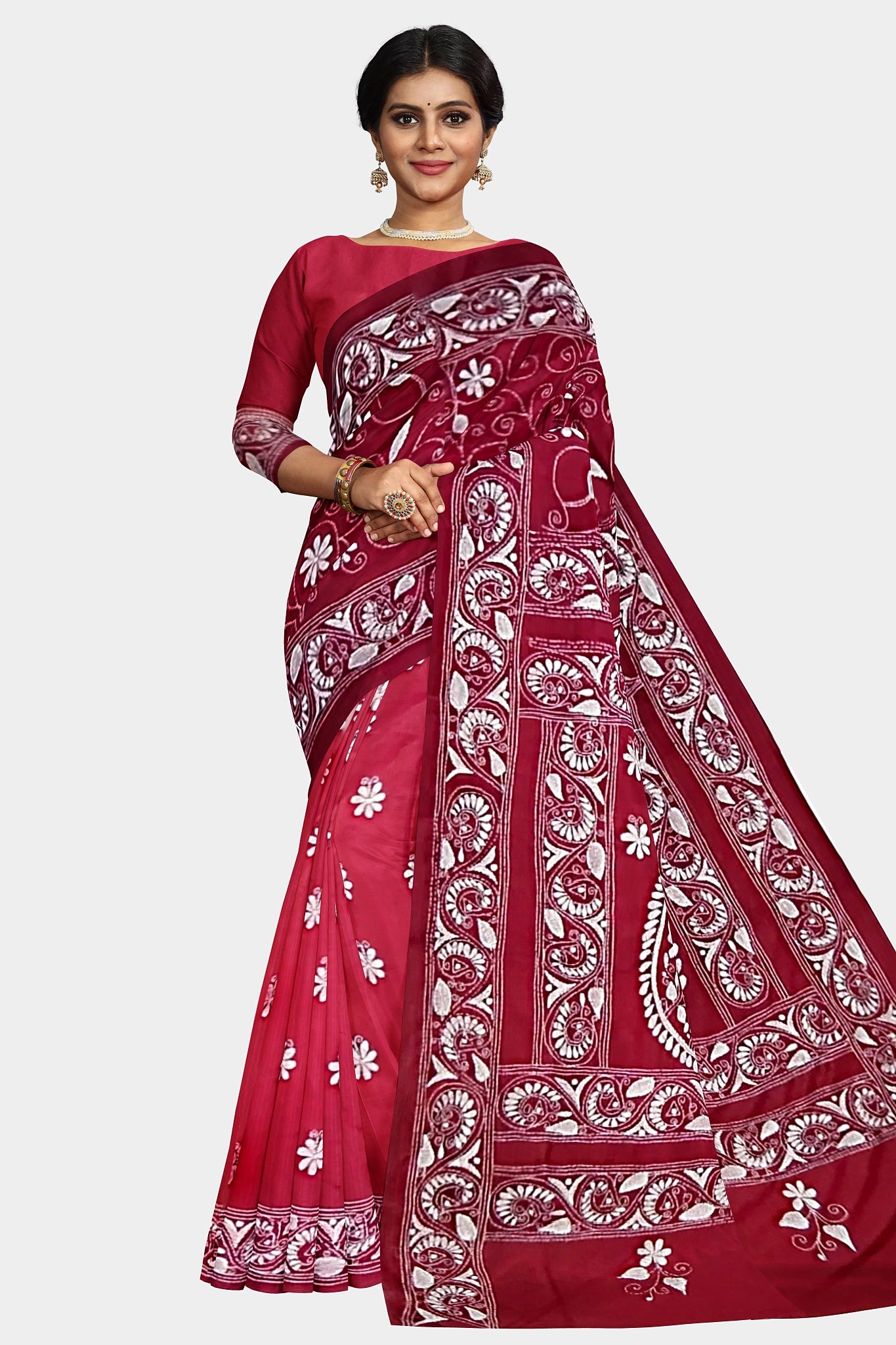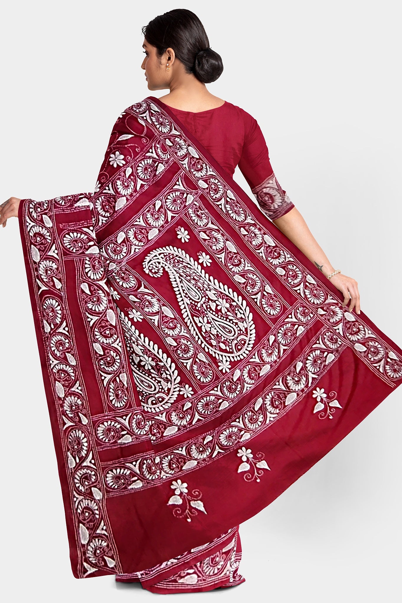 Elevate your style with our exquisite collection of Kantha Stitch Sarees for women. Crafted with the latest designs and showcasing the traditional artistry of Santiniketan, these silk sarees are a perfect blend of elegance and cultural heritage. Each saree is meticulously hand-stitched with intricate Kantha embroidery, adding a touch of uniqueness to every piece. Shop now and indulge in the timeless beauty of Kantha Stitched Silk Sarees, the epitome of grace and sophistication.