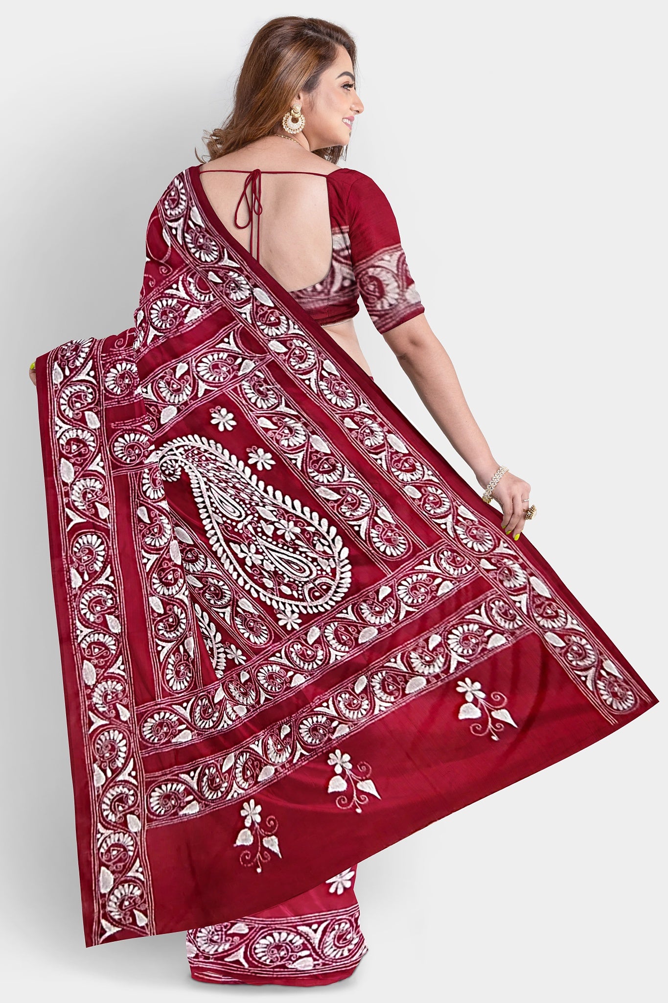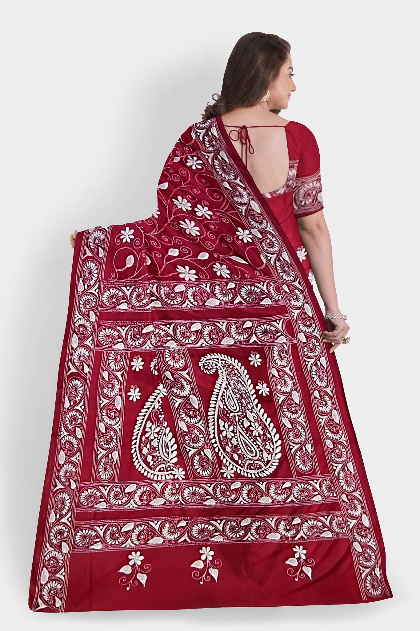 Kantha Stitch: Stylish Blended Silk Saree showcasing Traditional Artistry in Modern Indian Fashion With BP