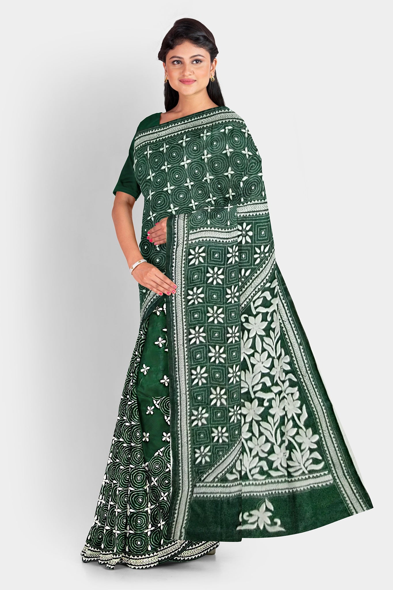 Kantha Stitch: Stylish Blended Silk Saree showcasing Traditional Artistry in Modern Indian Fashion with BP