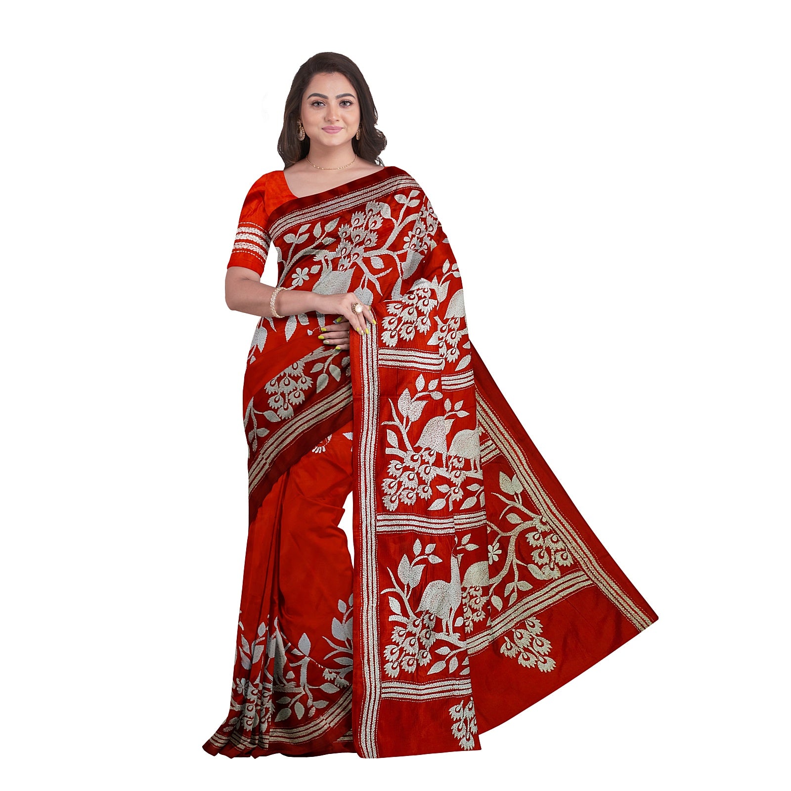 Elegant Blended Silk Saree with Traditional Kantha Stitch Work With BP